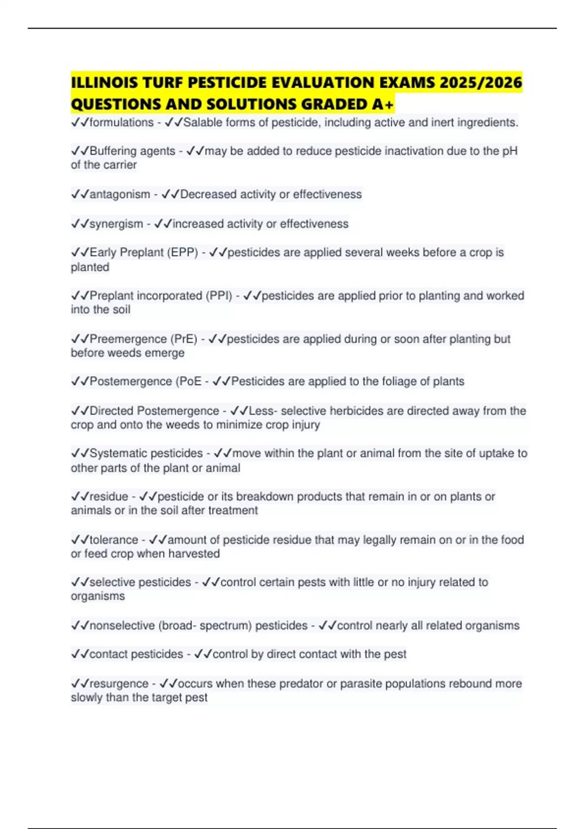 ILLINOIS TURF PESTICIDE EVALUATION EXAMS 2025/2026 QUESTIONS AND SOLUTIONS GRADED A+