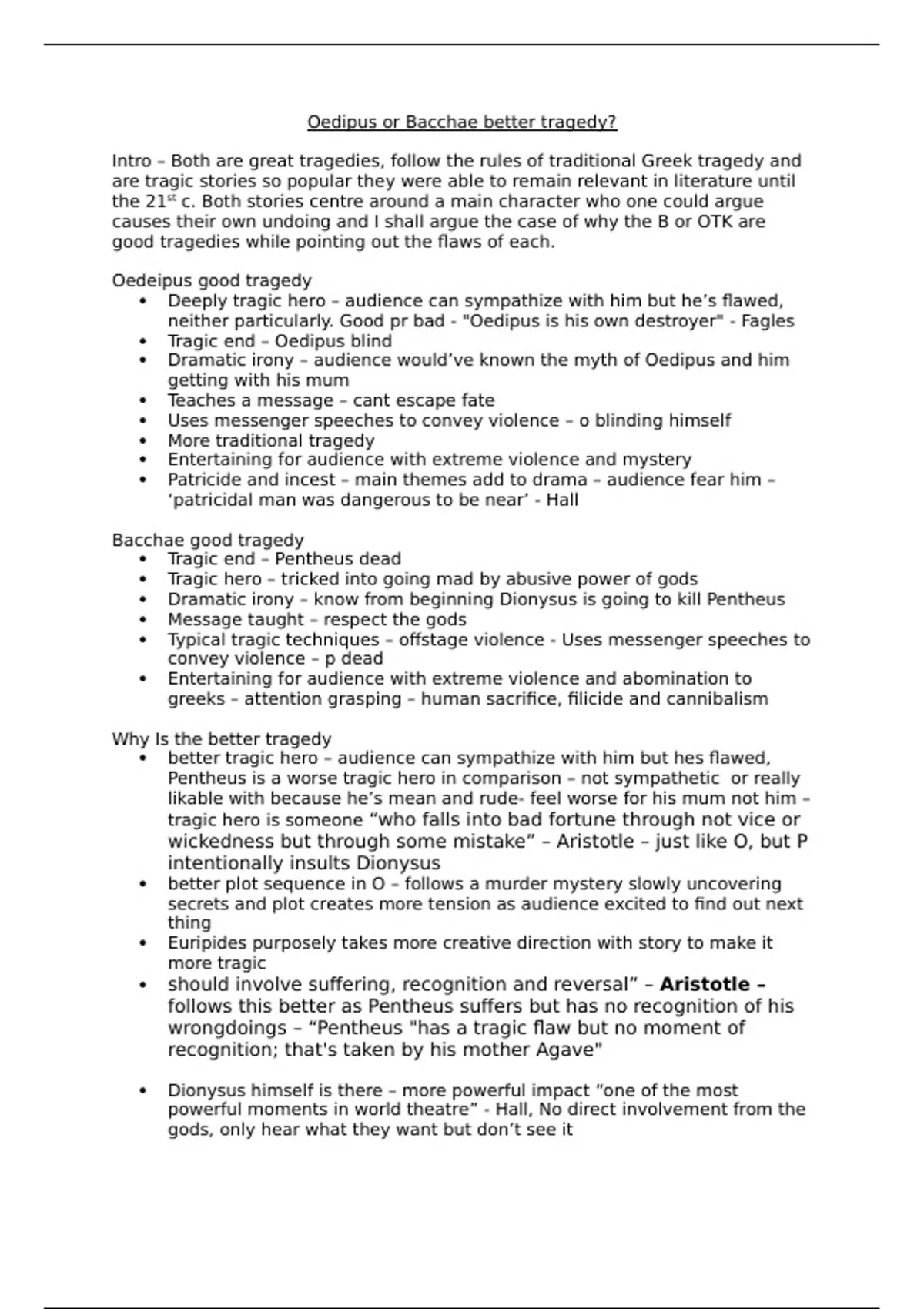 Intro – Both are great tragedies, follow the rules of traditional Greek tragedy and