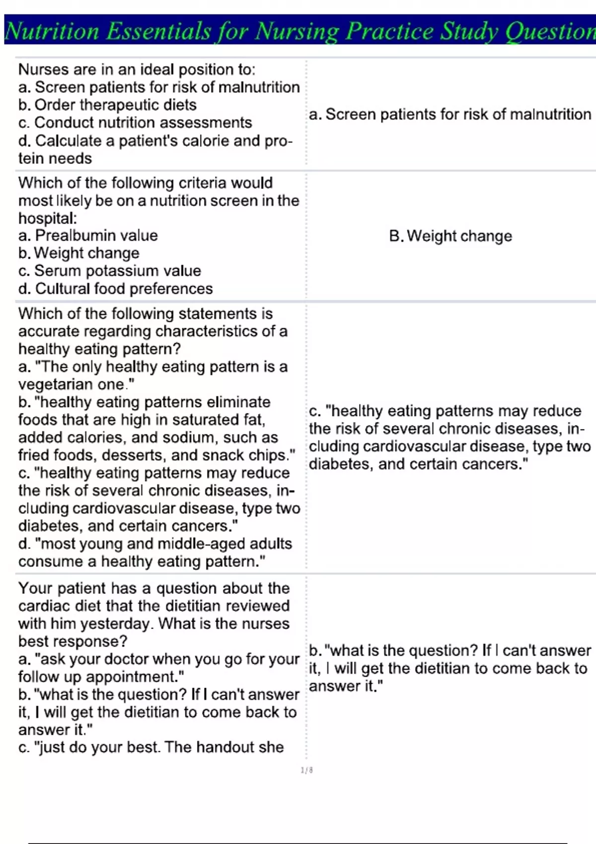Nutrition Essentials for Nursing Practice Study Questions Nutrition Essentials for Nursing Practice Study Questions Nutrition Essentials for Nursing Practice Study Questions