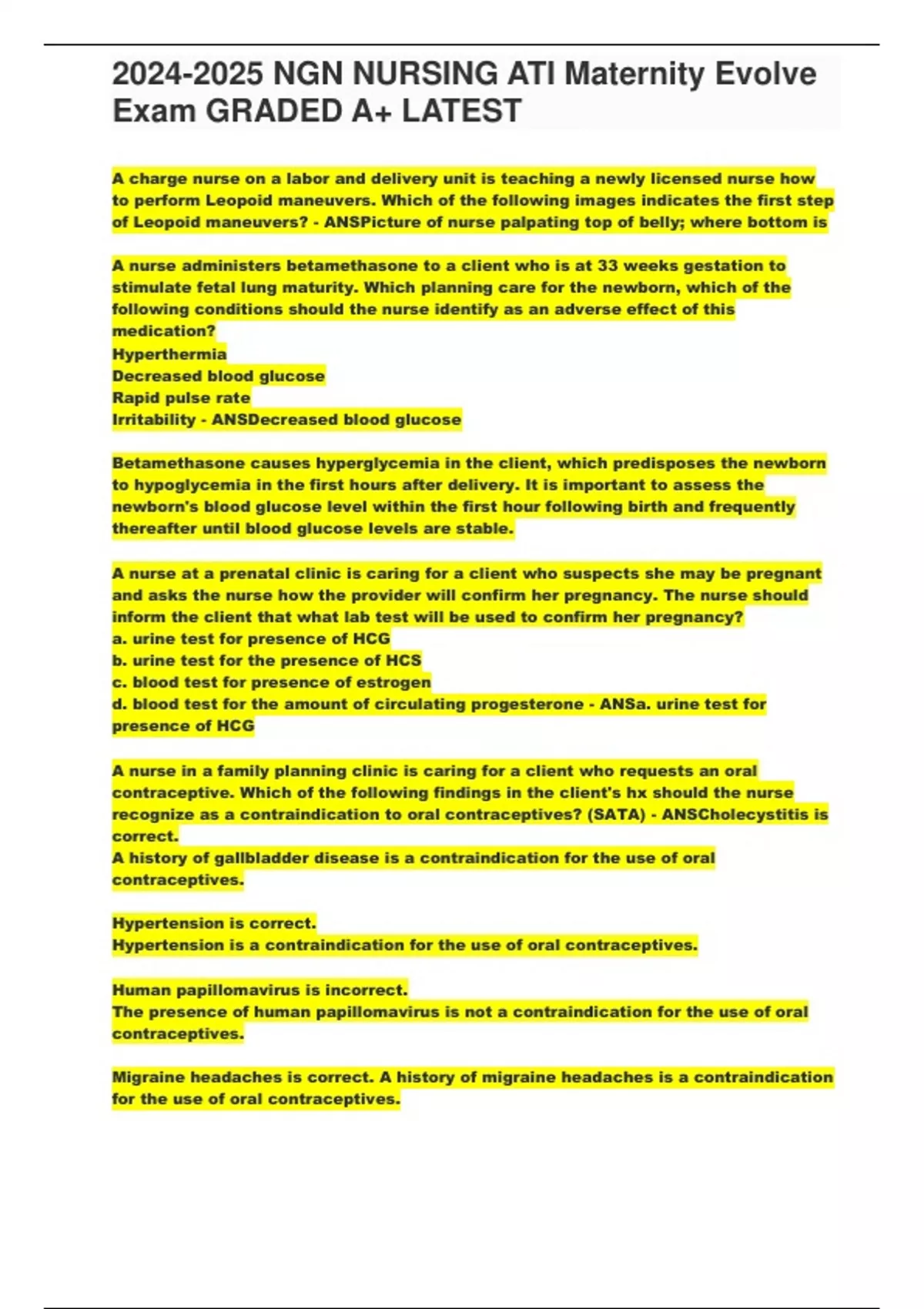 , 2024-2025 NGN NURSING ATI Maternity Evolve