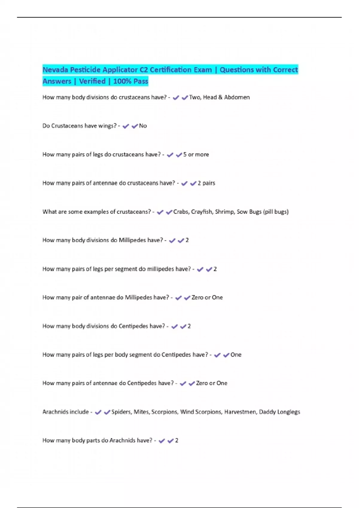 Nevada Pesticide Applicator C2 Certification Exam | Questions with Correct Answers | Verified | 100% Pass
