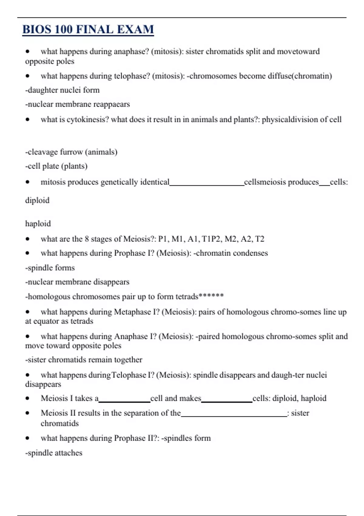 BIOS 100 FINAL EXAM