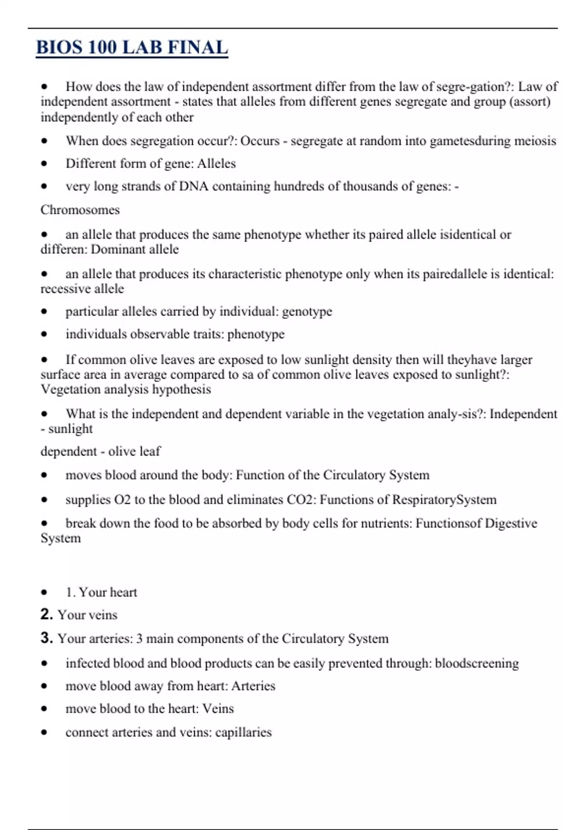 • When does segregation occur?: Occurs - segregate at random into gametesduring meiosis