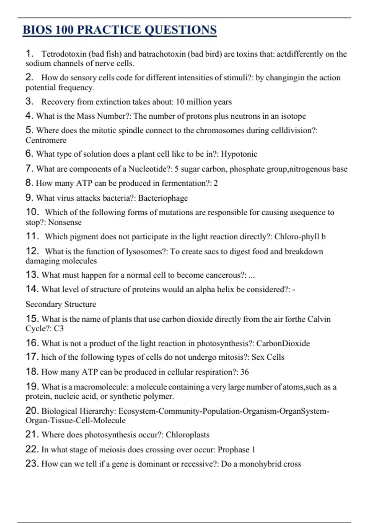 BIOS 100 PRACTICE QUESTIONS