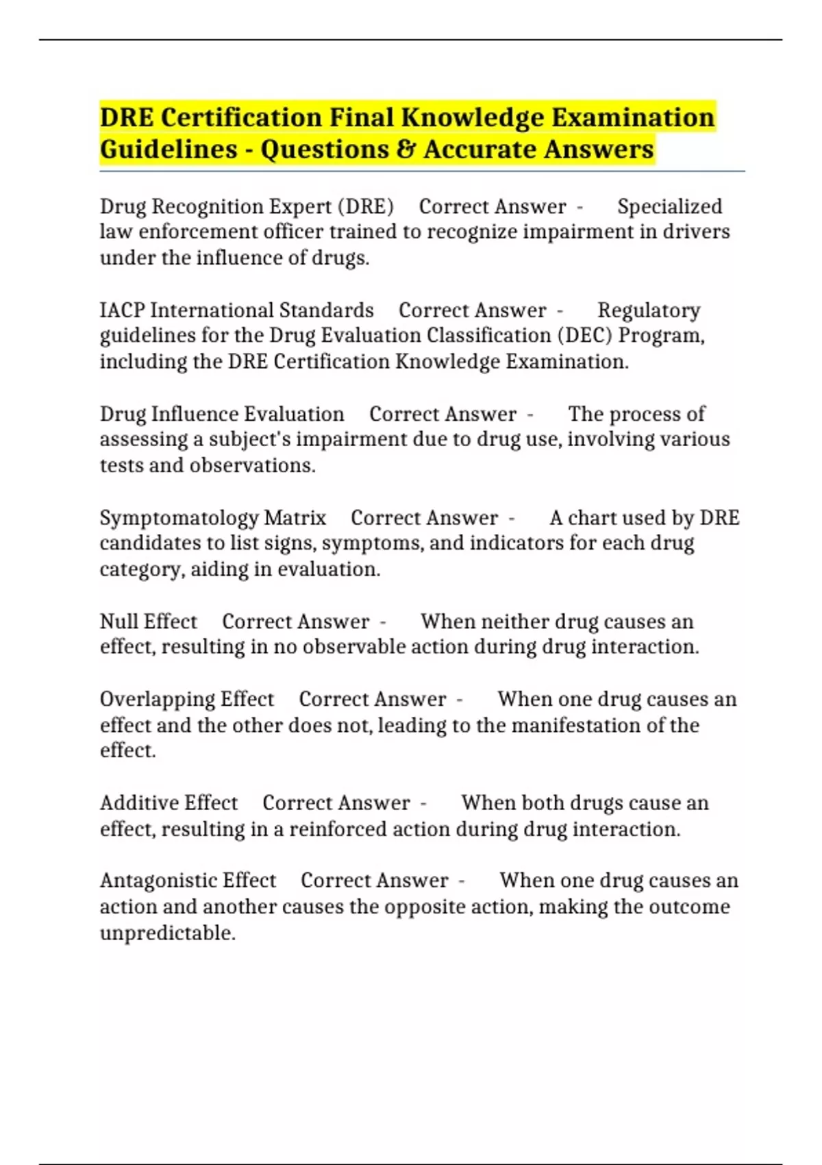 Drug Recognition Expert (DRE) Correct Answer - Specialized