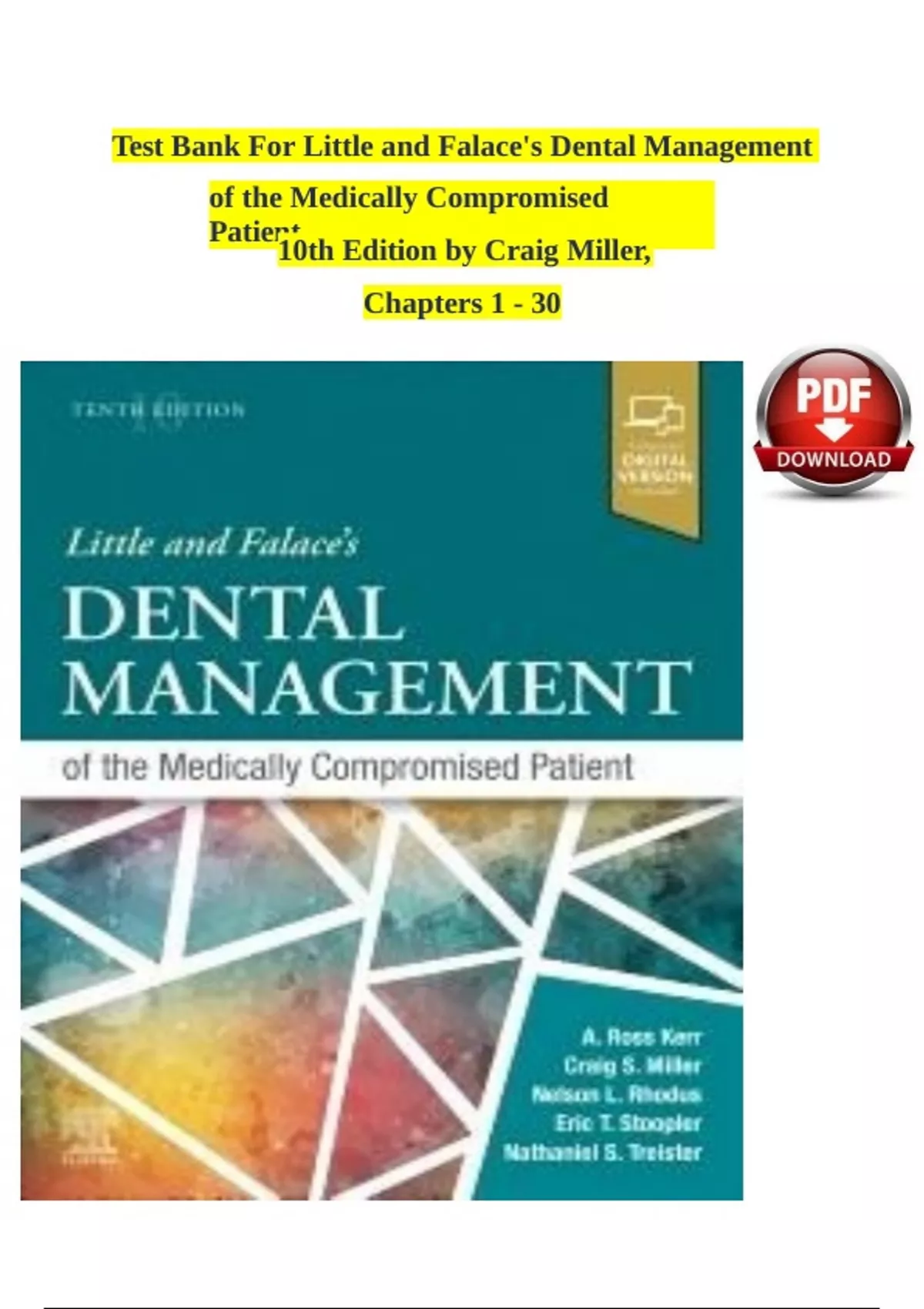 Little and falace s dental management of the medically compromised patient 9th edition test bank