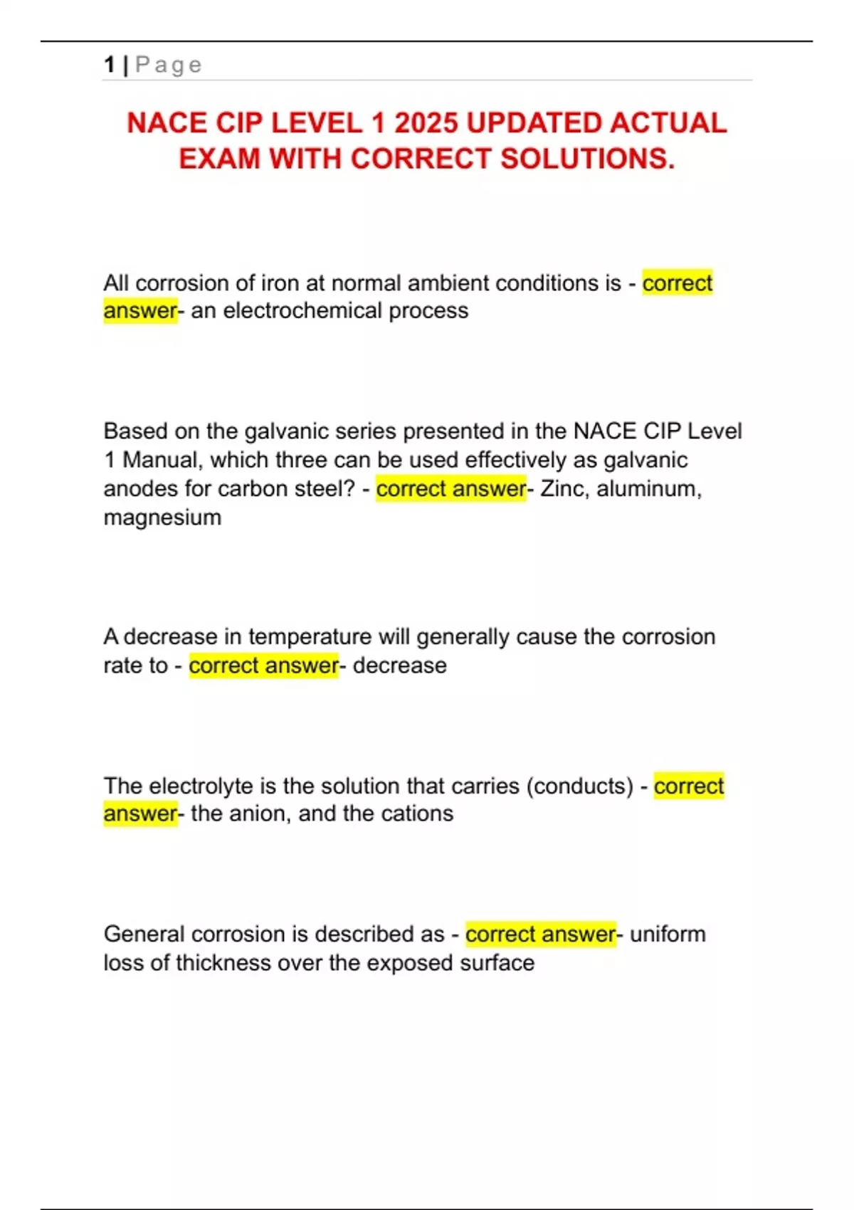 NACE CIP LEVEL 1 2025 UPDATED ACTUAL EXAM WITH CORRECT SOLUTIONS.