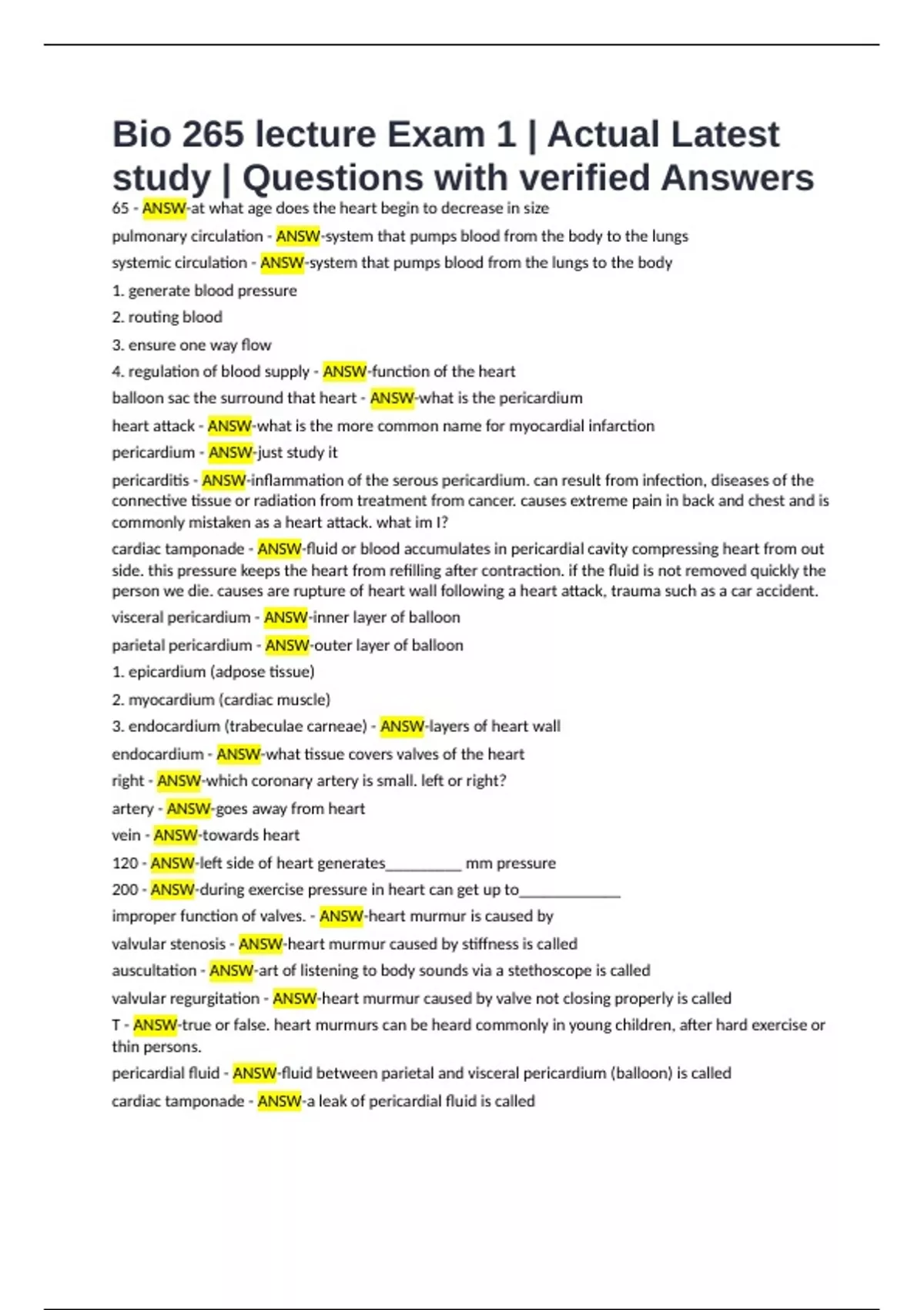 Bio 265 lecture Exam 1 | Actual Latest study | Questions with verified Answers