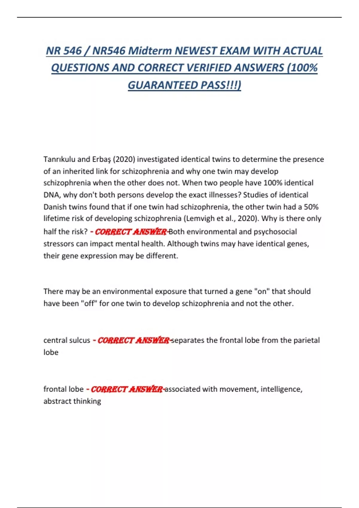 NR 546 / NR546 Midterm NEWEST EXAM WITH ACTUAL QUESTIONS AND CORRECT VERIFIED ANSWERS (100% GUARANTEED PASS!!!)