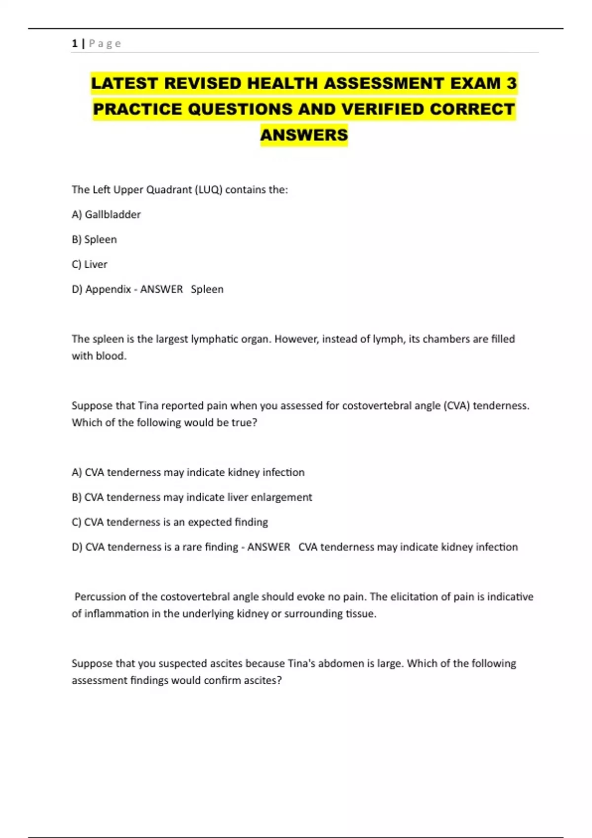 LATEST REVISED HEALTH ASSESSMENT EXAM 3