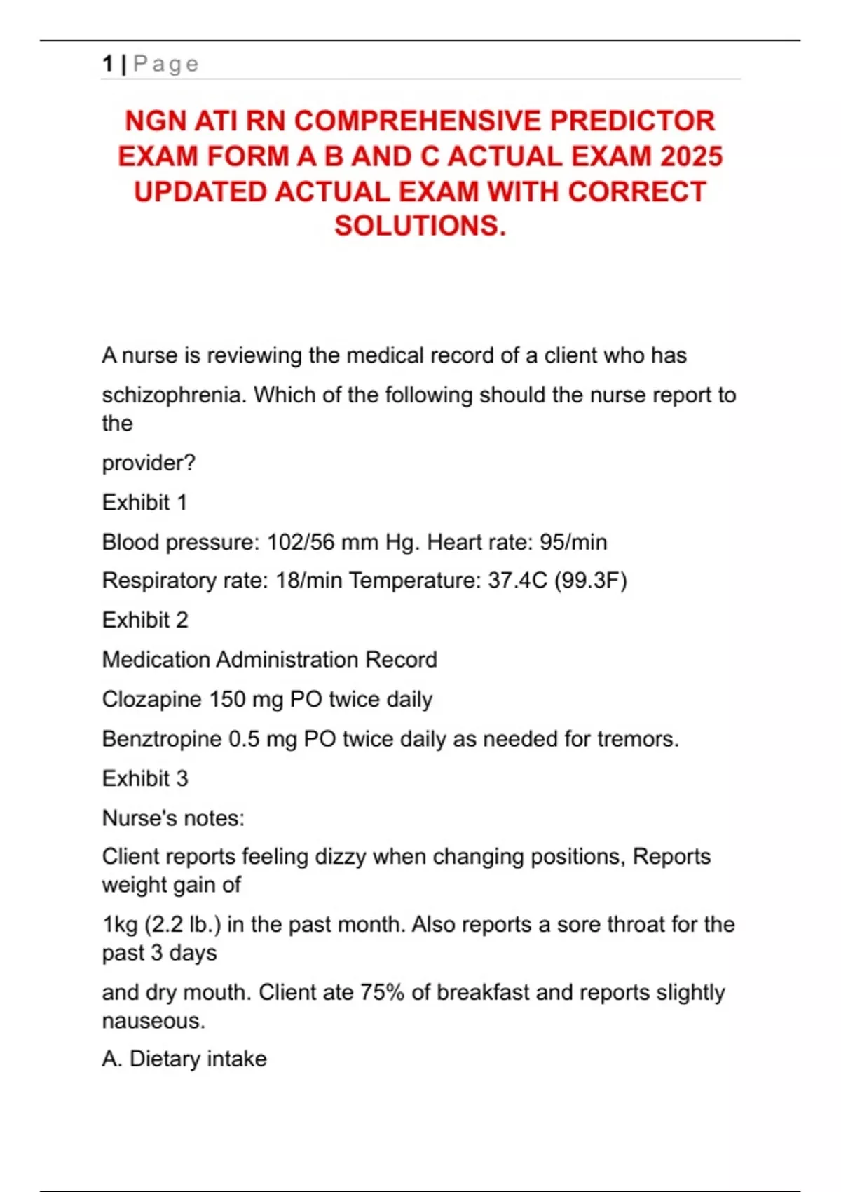 NGN ATI RN COMPREHENSIVE PREDICTOR EXAM FORM A B AND C ACTUAL EXAM 2025 UPDATED ACTUAL EXAM WITH CORRECT SOLUTIONS.