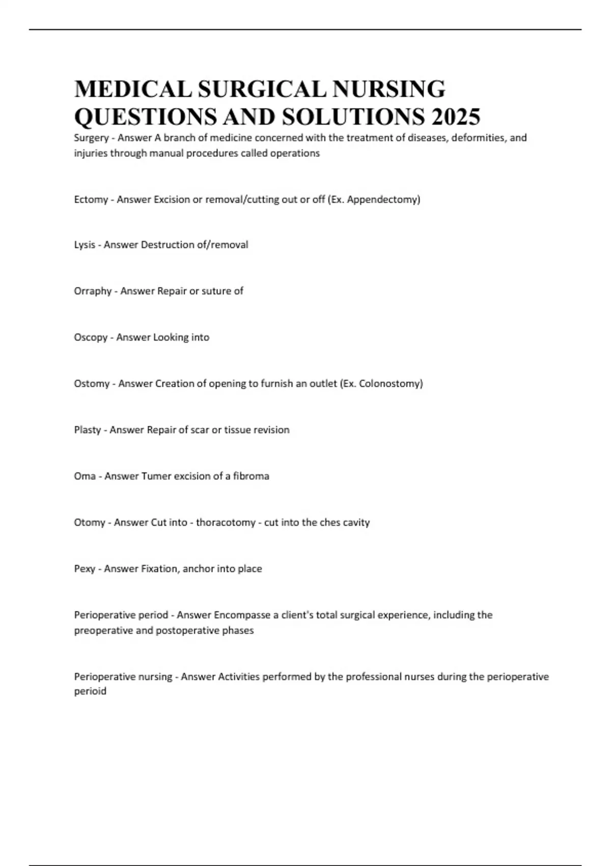 Surgery - Answer A branch of medicine concerned with the treatment of diseases, deformities, and