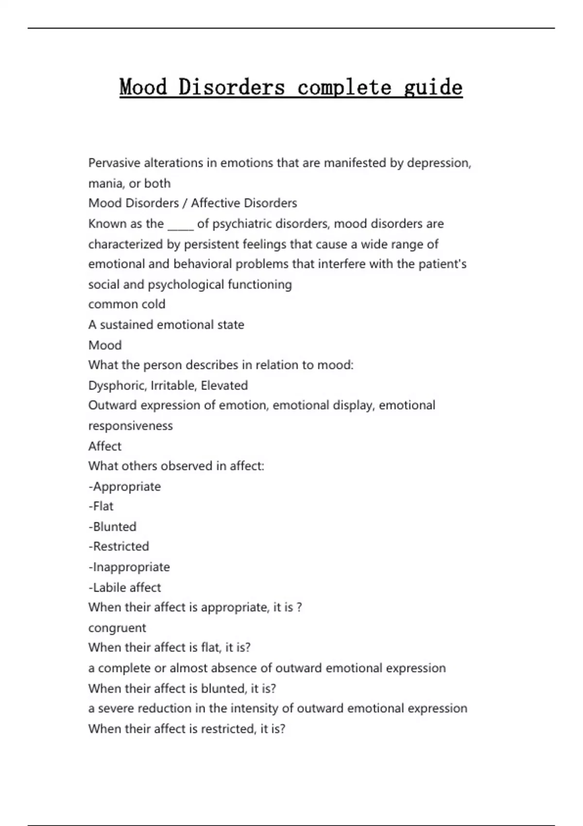 Mood Disorders complete guide