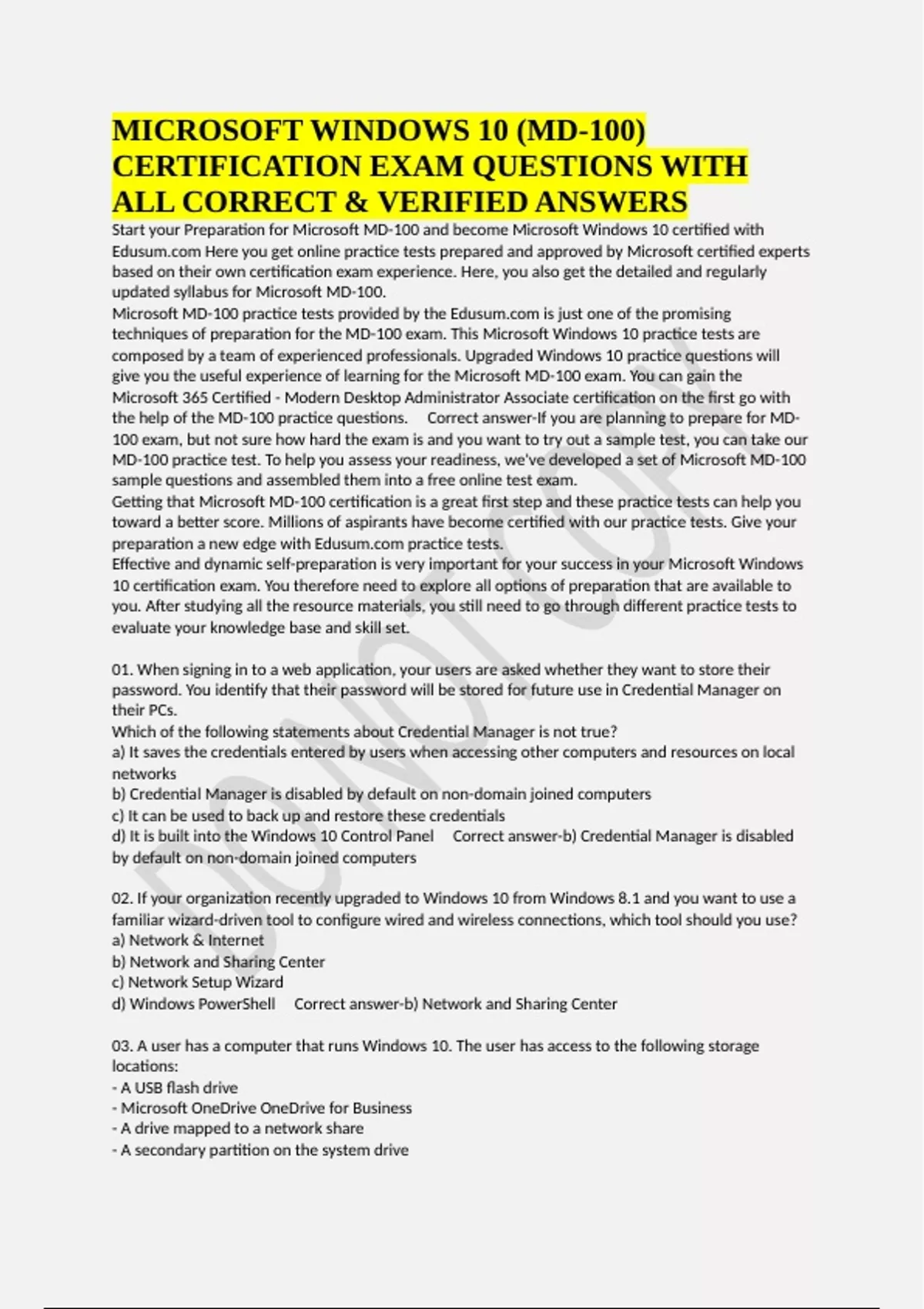 the help of the MD-100 practice questions. Correct answer-If you are planning to prepare for MD-