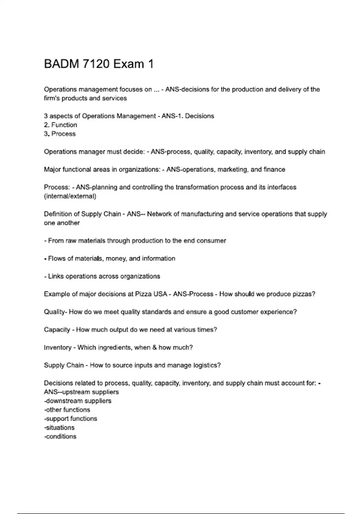BADM 7120 Exam 1 questions and answers : {LATEST 2025/ 2026 UPDATE} COMPLETE REAL AND AUTHENTIC EXAM {100% CORRECT} RATED A+!!!!