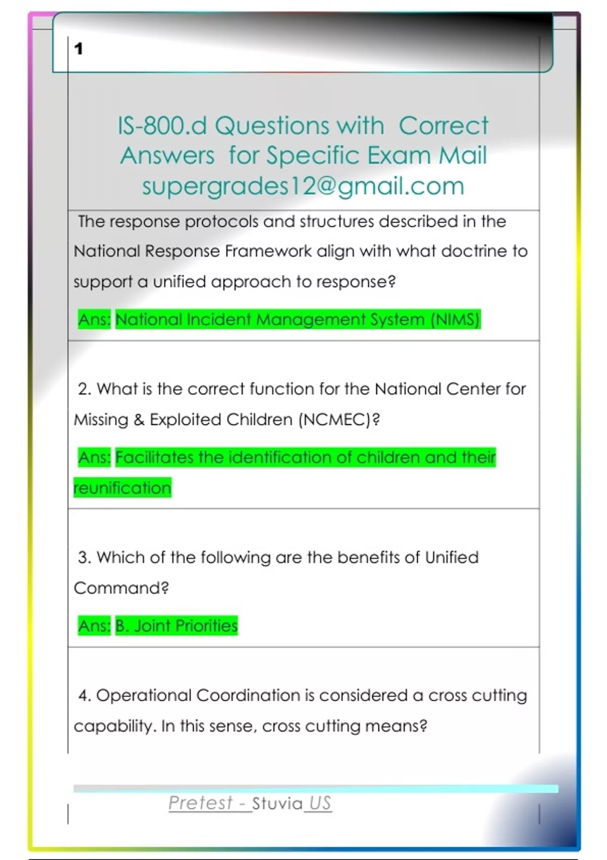 IS-800.d Questions with Correct Answers for Specific Exam Mail supergrades12@gmail.com