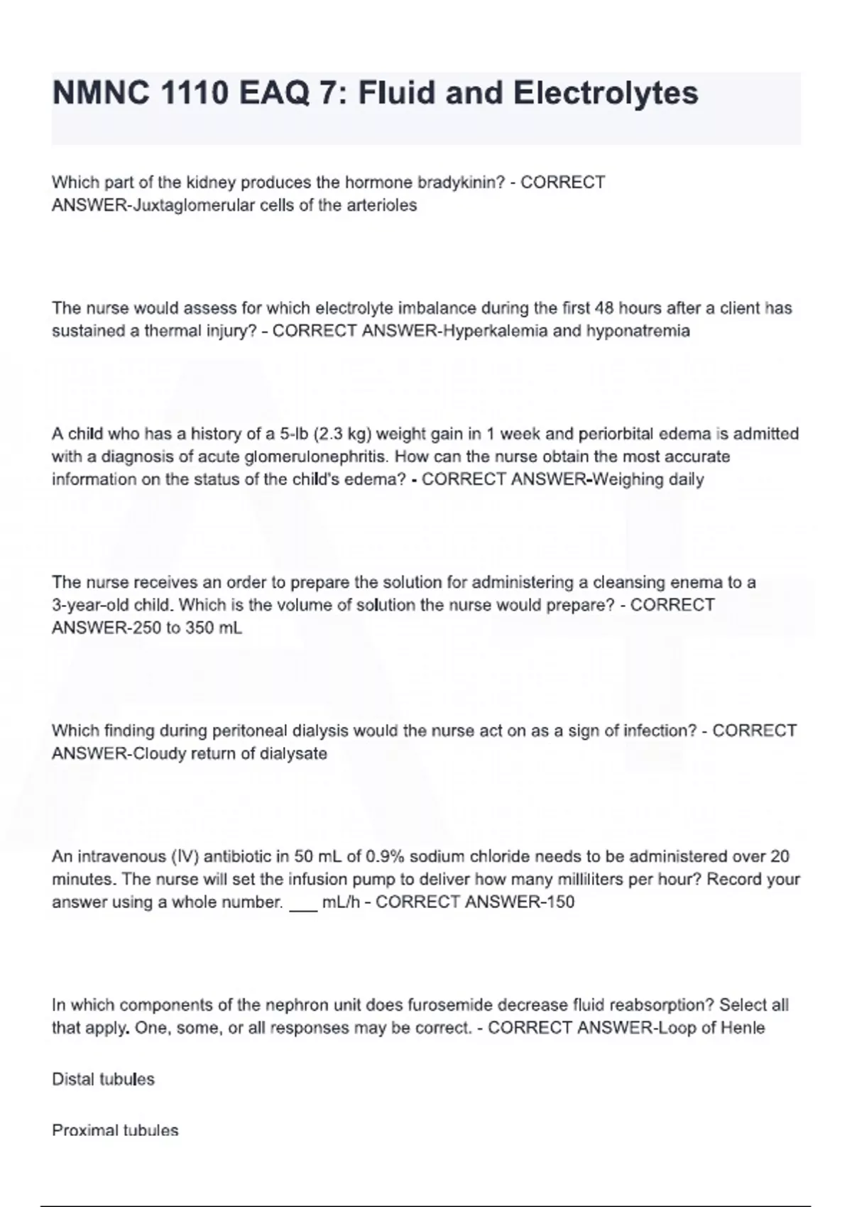 NMNC 1110 EAQ 7 Fluid and Electrolytes Review Questions with Correct Answers: {LATEST 2025/ 2026 UPDATE} COMPLETE REAL AND AUTHENTIC EXAM {100% CORRECT} RATED A+!!!!