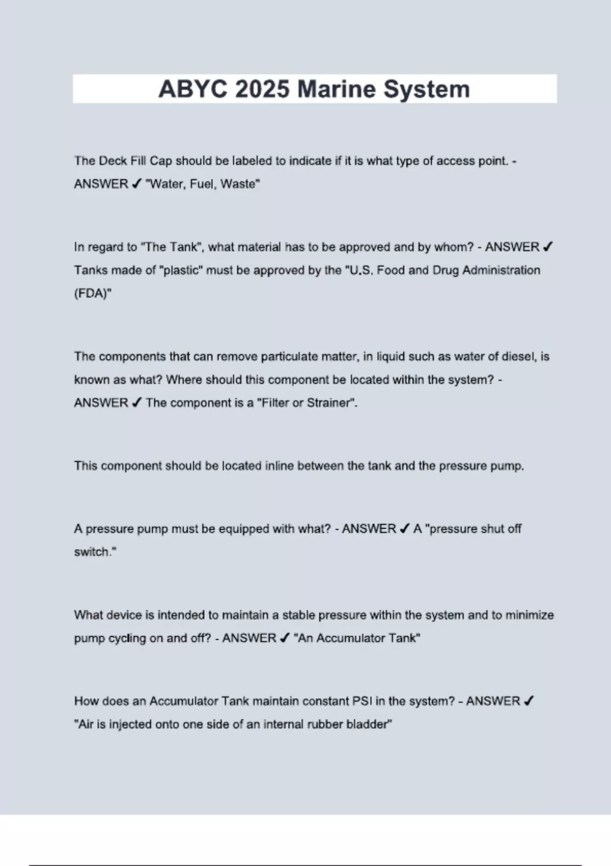 ABYC 2025 Marine System Comprehensive questions and verified answers (100% correct) grade a+