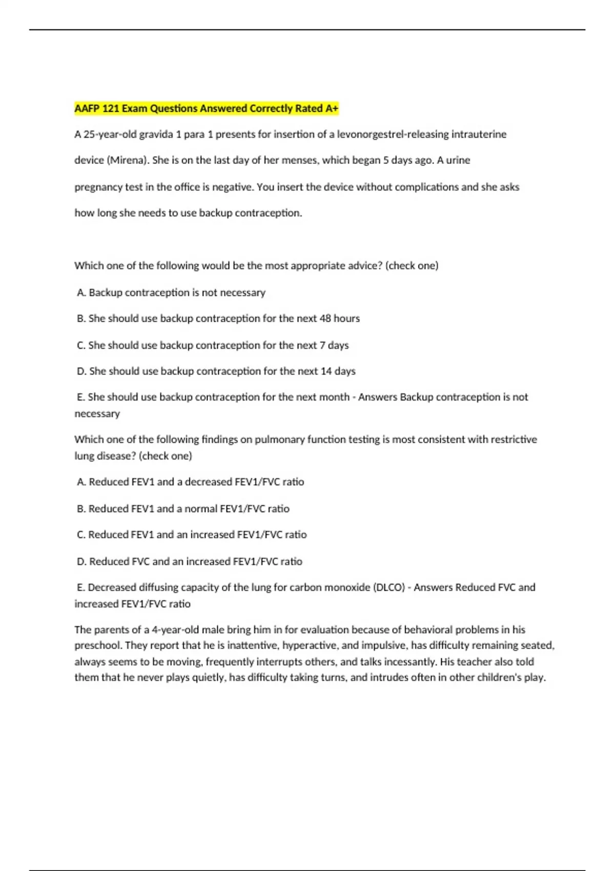 preschool. They report that he is inattentive, hyperactive, and impulsive, has difficulty remaining seated,