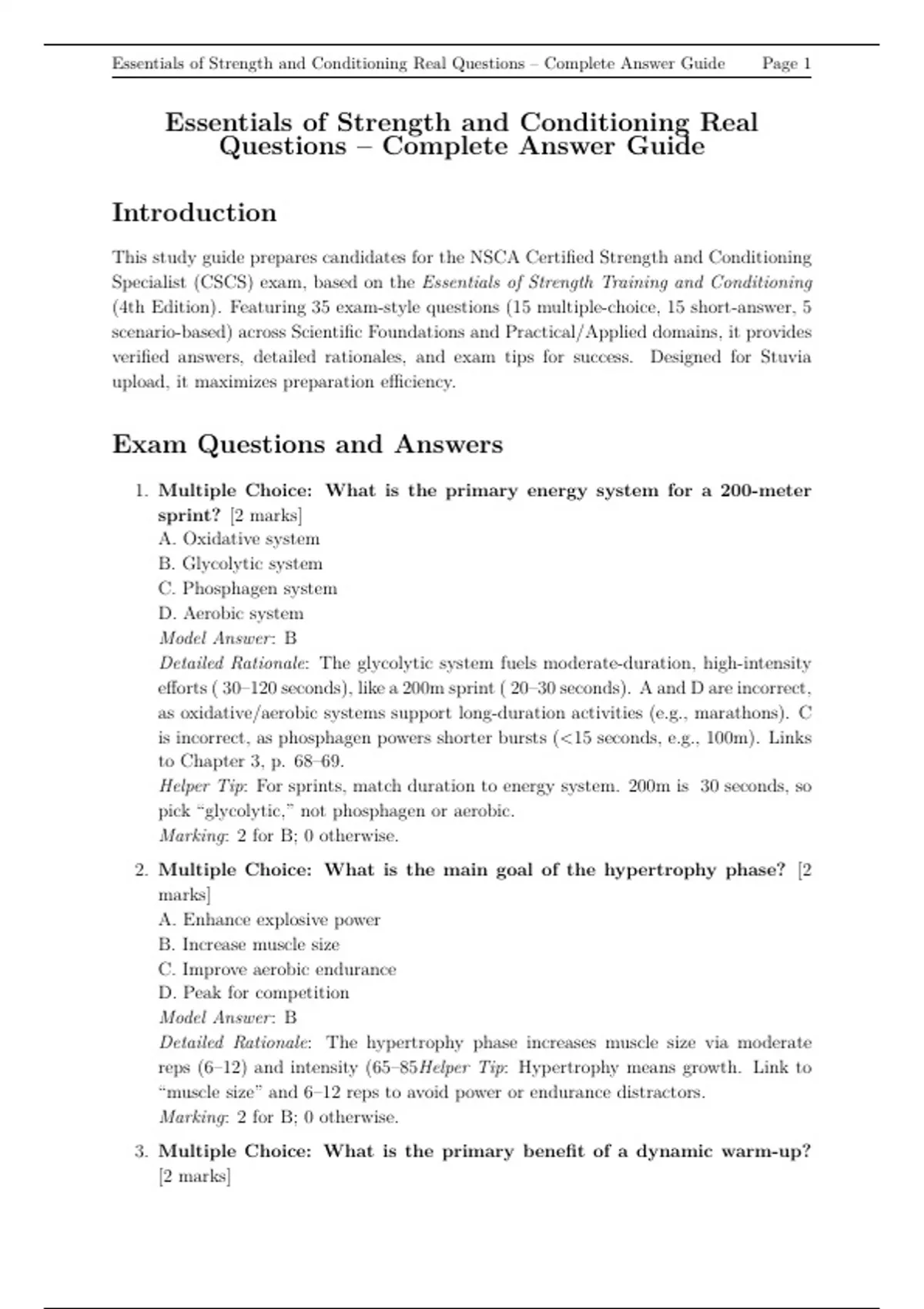 , Essentials of Strength and Conditioning Real Questions – Complete Answer Guide Page 2