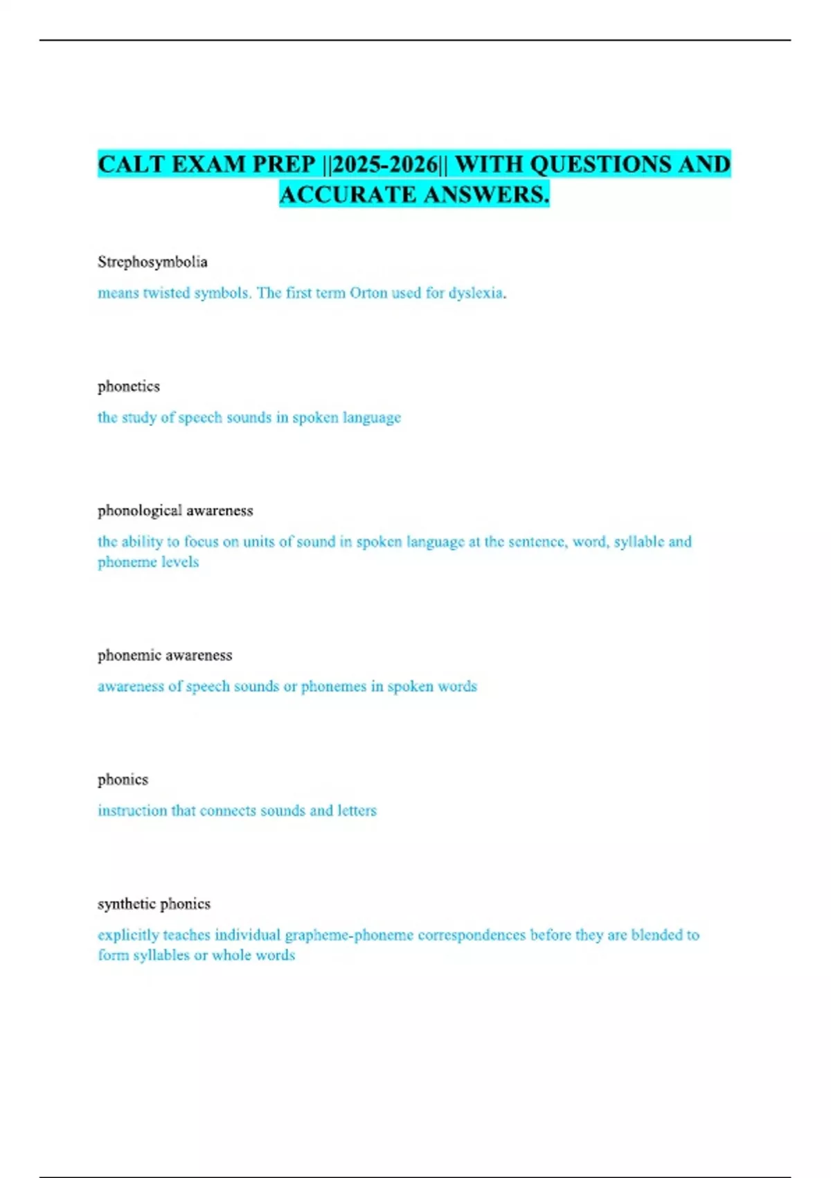 CALT EXAM PREP |||| WITH QUESTIONS AND ACCURATE ANSWERS.