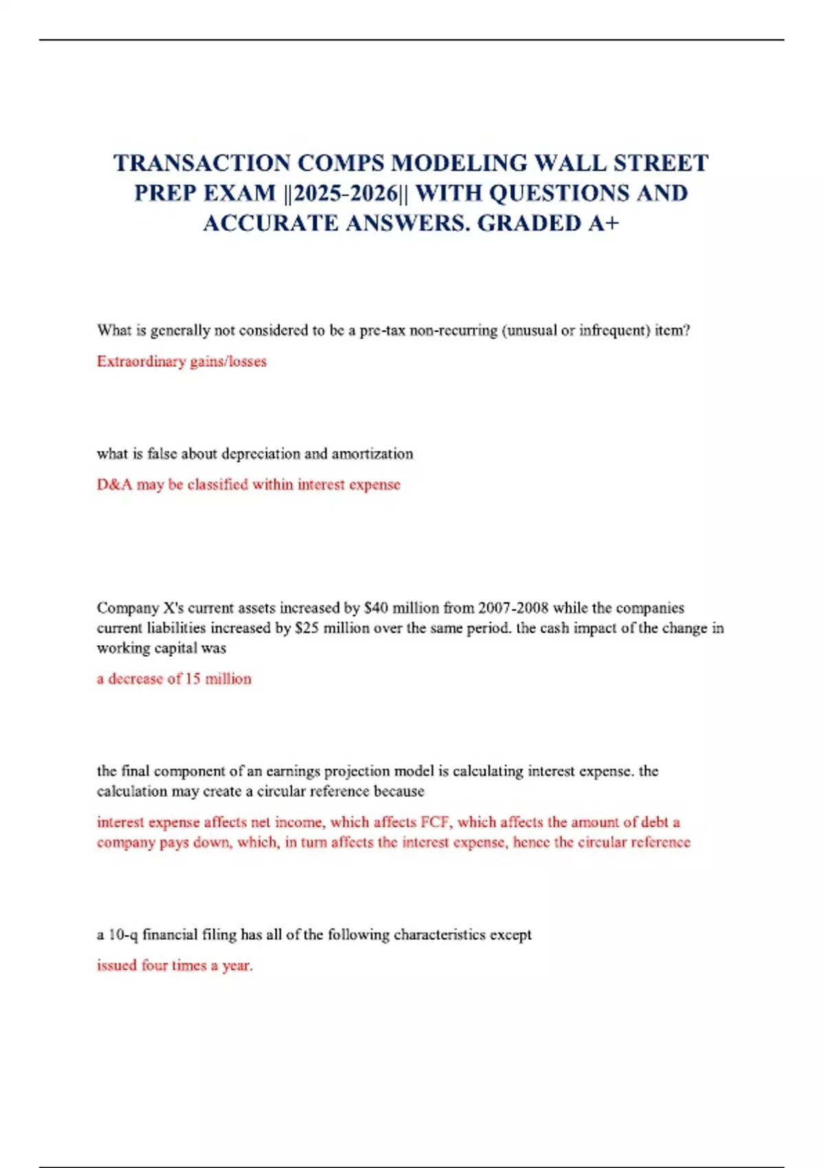TRANSACTION COMPS MODELING WALL STREET PREP EXAM |||| WITH QUESTIONS AND ACCURATE ANSWERS. GRADED A+