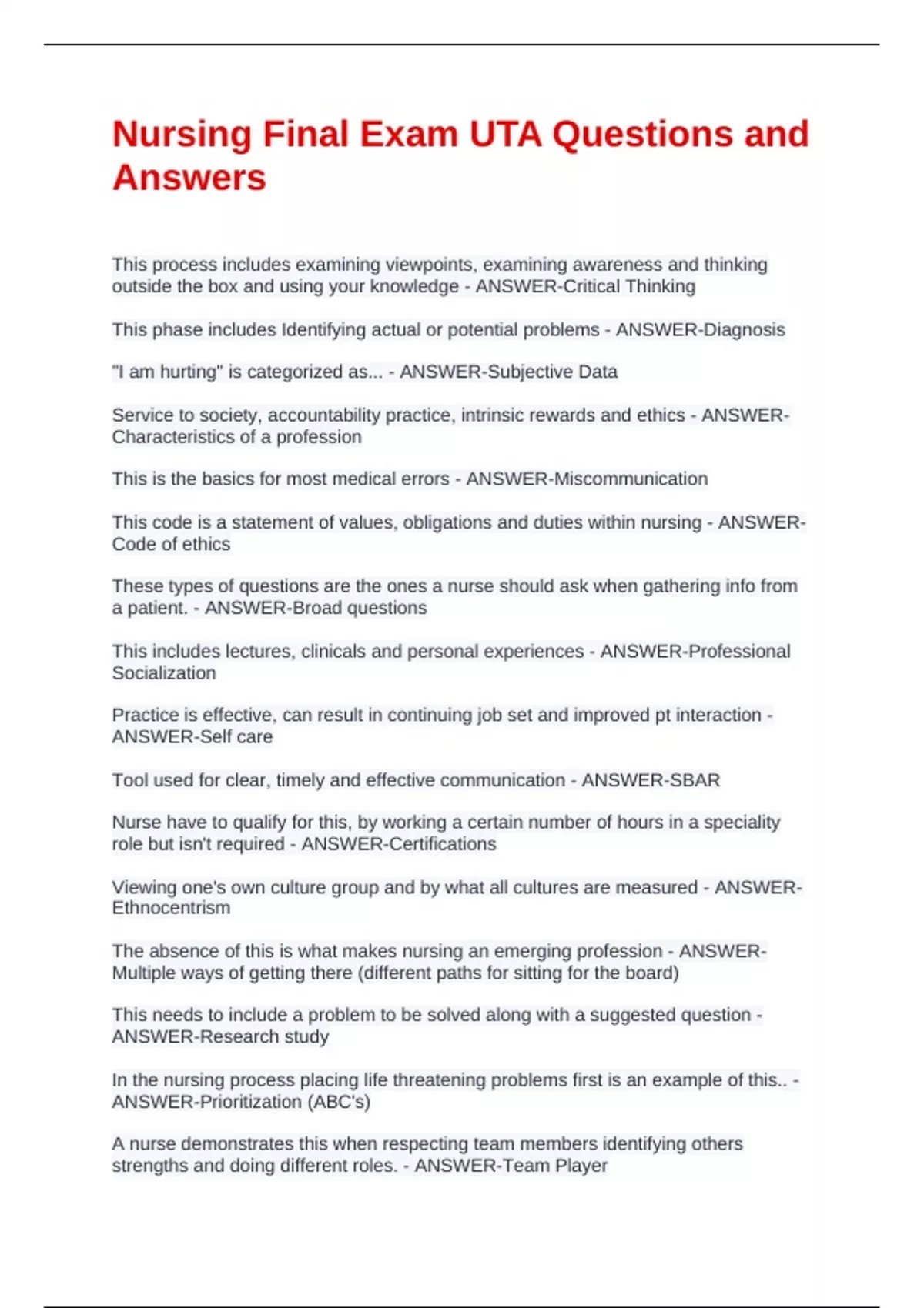 This includes lectures, clinicals and personal experiences - ANSWER-Professional