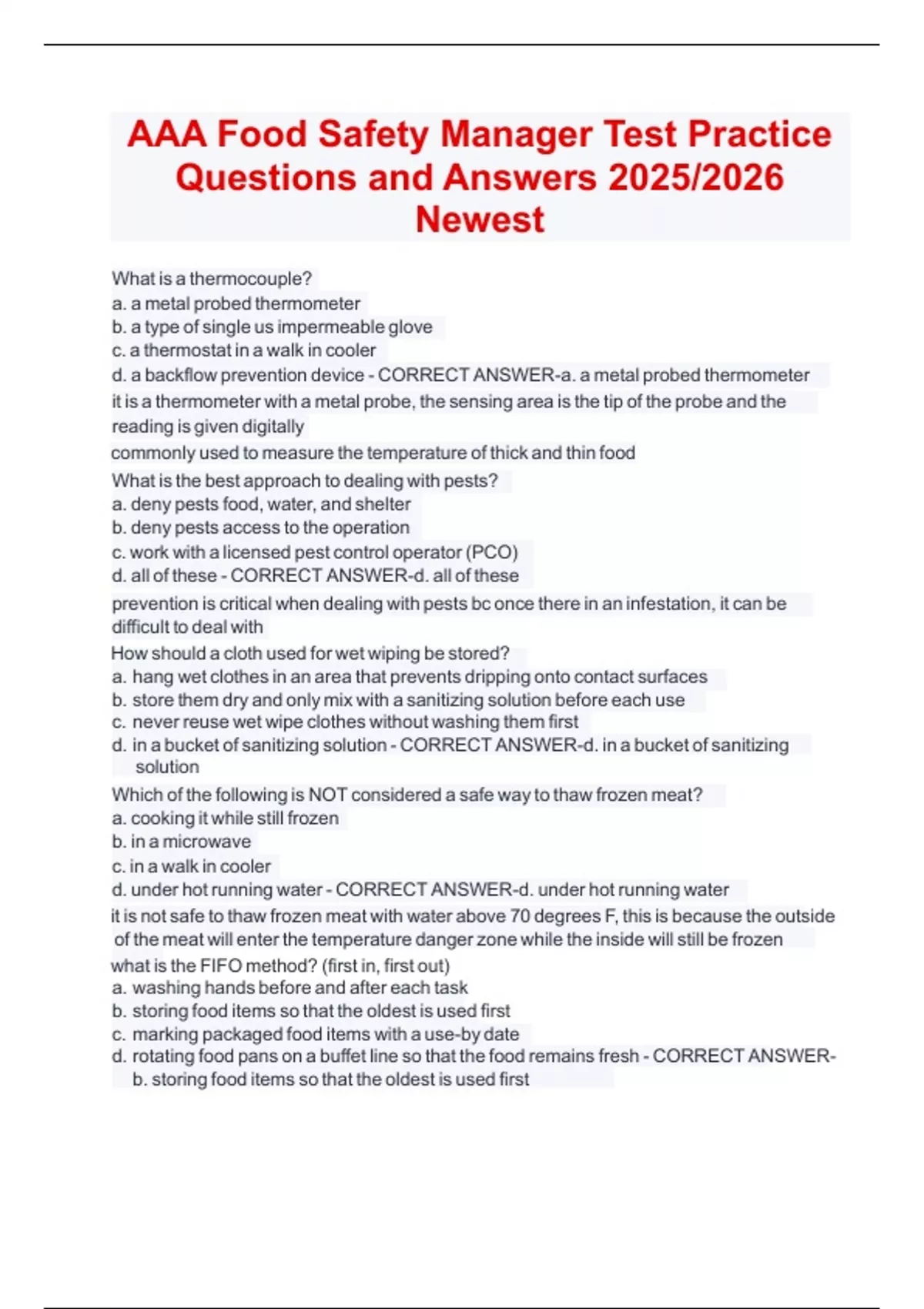AAA Food Safety Manager Test Practice Questions and Answers 2025/2026 Newest AAA Food Safety Manager Test Practice Questions and Answers 2025/2026 Newest AAA Food Safety Manager Test Practice Questions and Answers 2025/2026 Newest AAA Food Safety Manager Test Practice Questions and Answers 2025/2026 Newest AAA Food Safety Manager Test Practice Questions and Answers 2025/2026 Newest