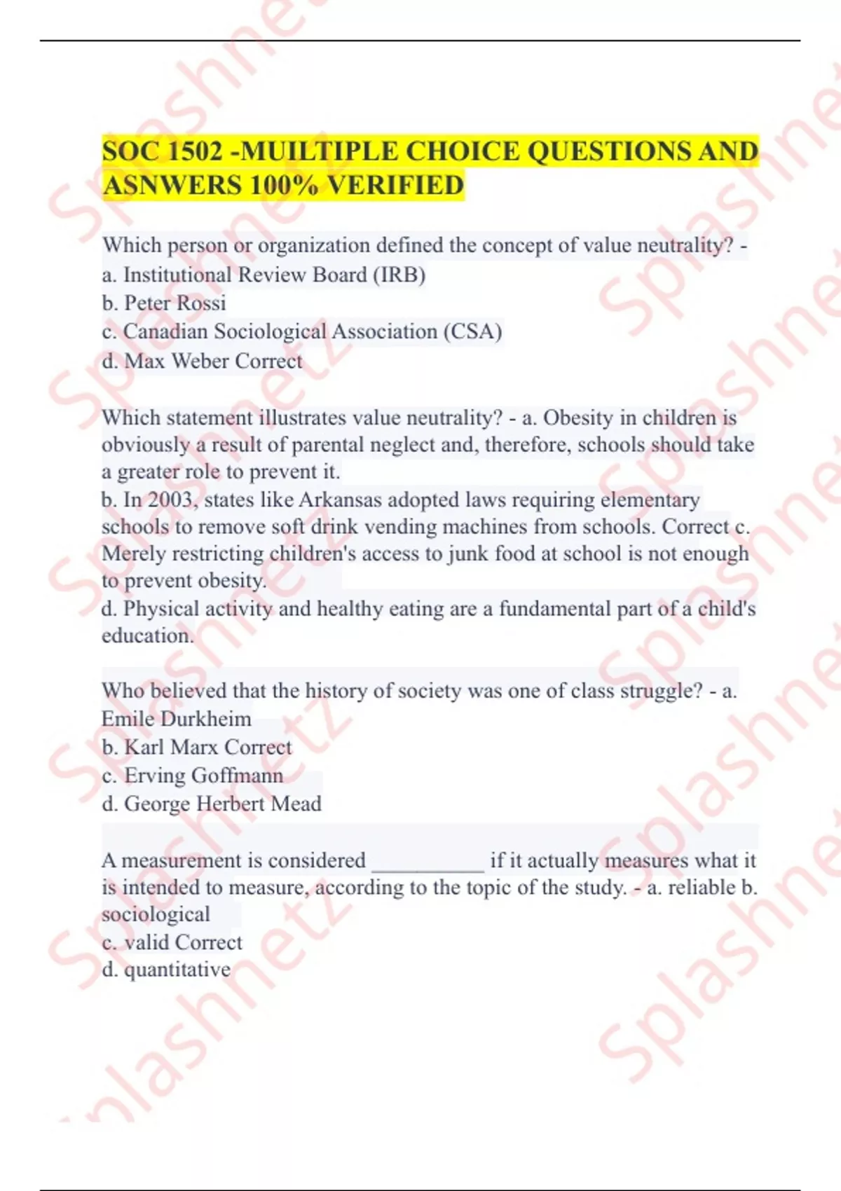 SOC 1502 -MUILTIPLE CHOICE QUESTIONS AND