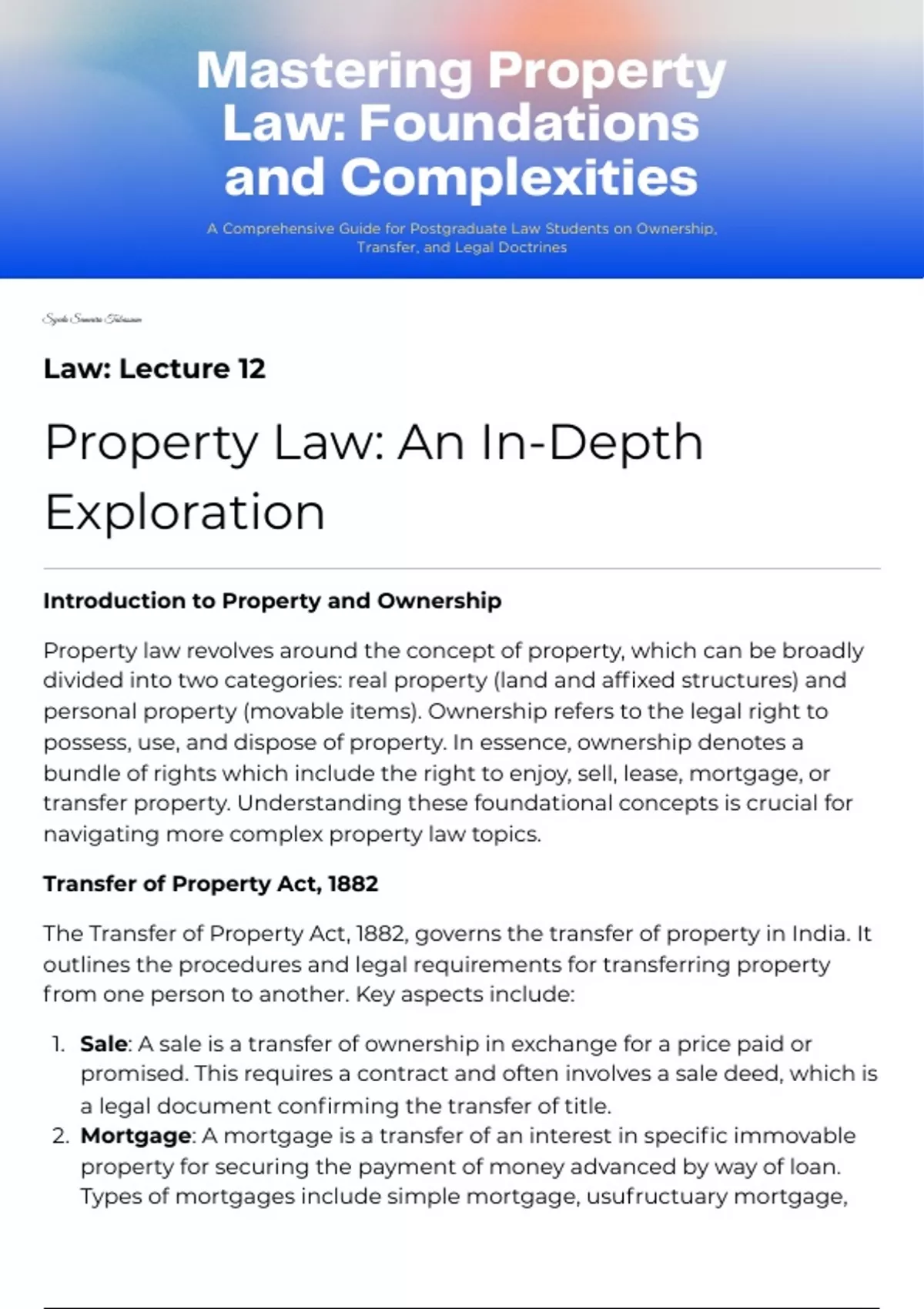 A Comprehensive Guide for Postgraduate Law Students on Ownership,