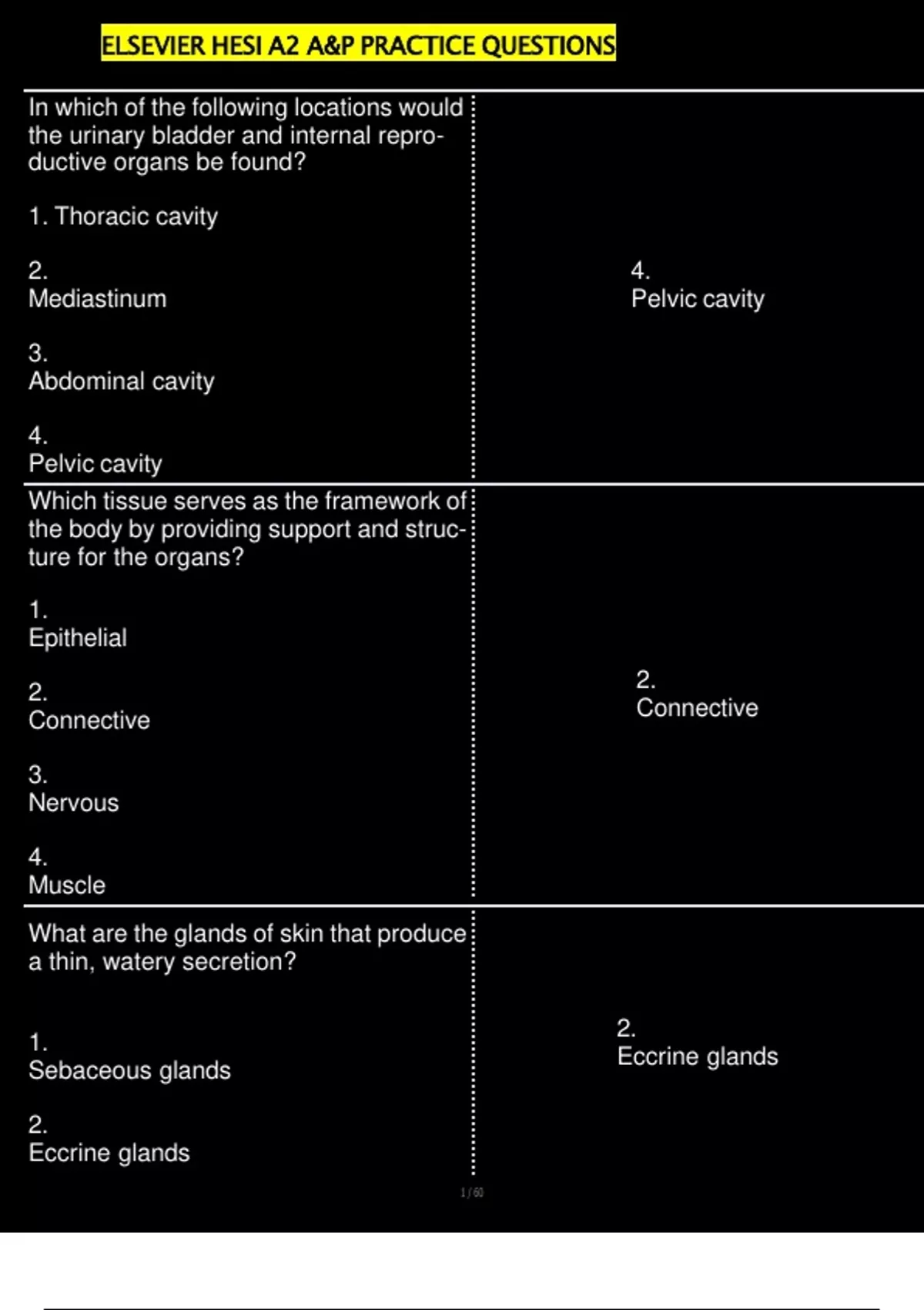 , ELSEVIER HESI A2 A&P PRACTICE QUESTIONS