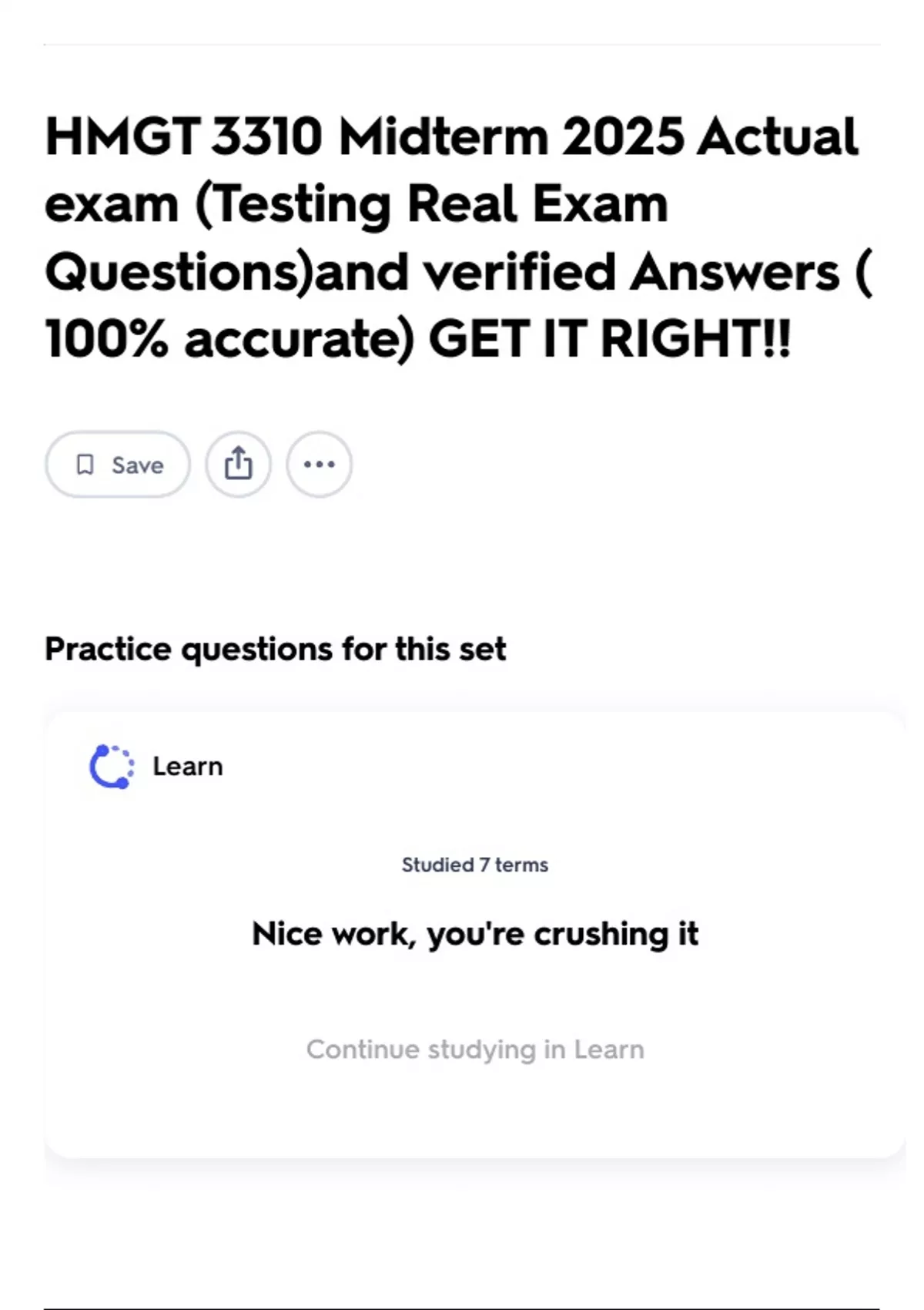Continue studying in Learn