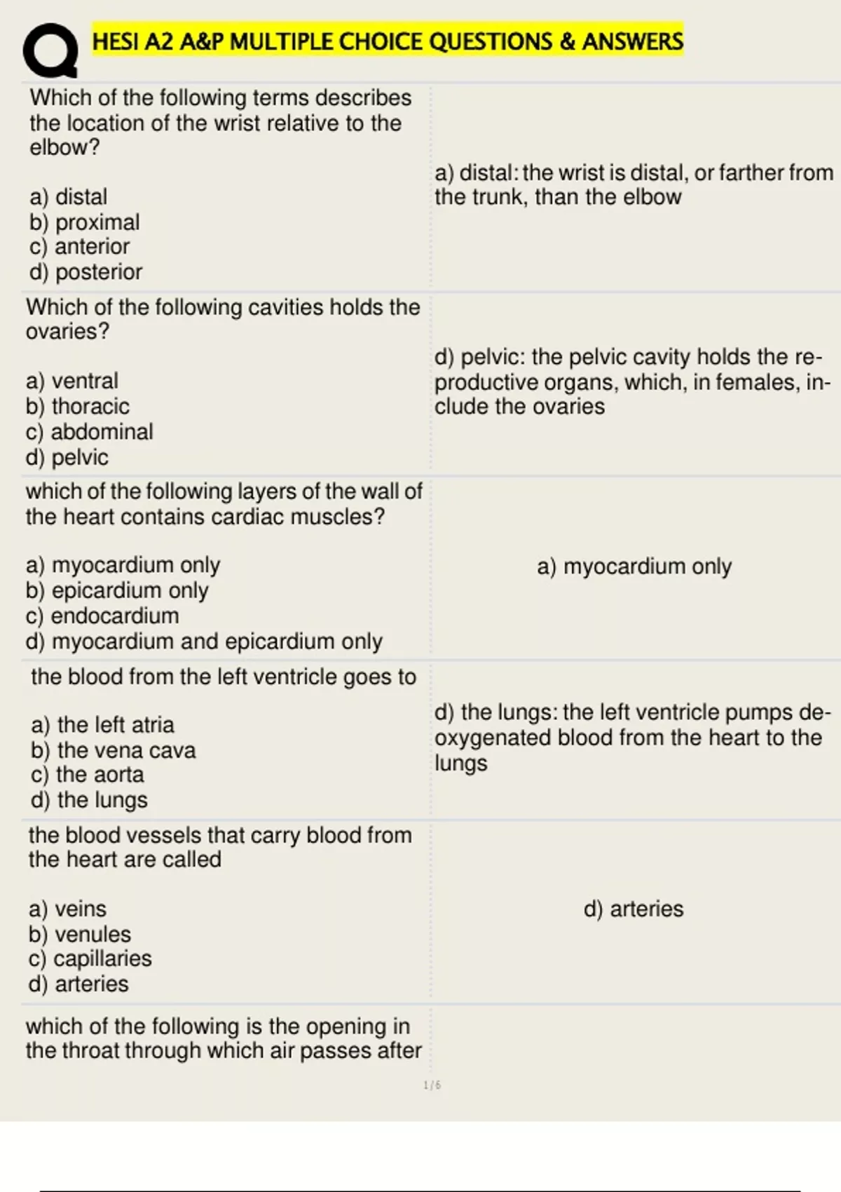 , HESI A2 A&P MULTIPLE CHOICE QUESTIONS & ANSWERS