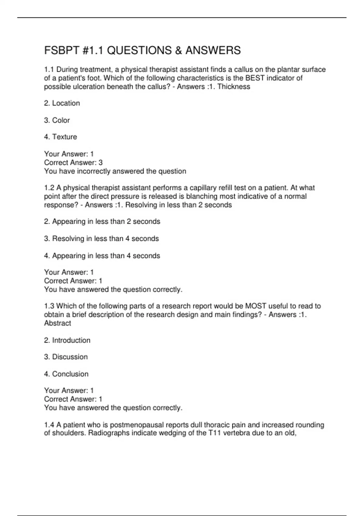 FSBPT #1.1 QUESTIONS & ANSWERS