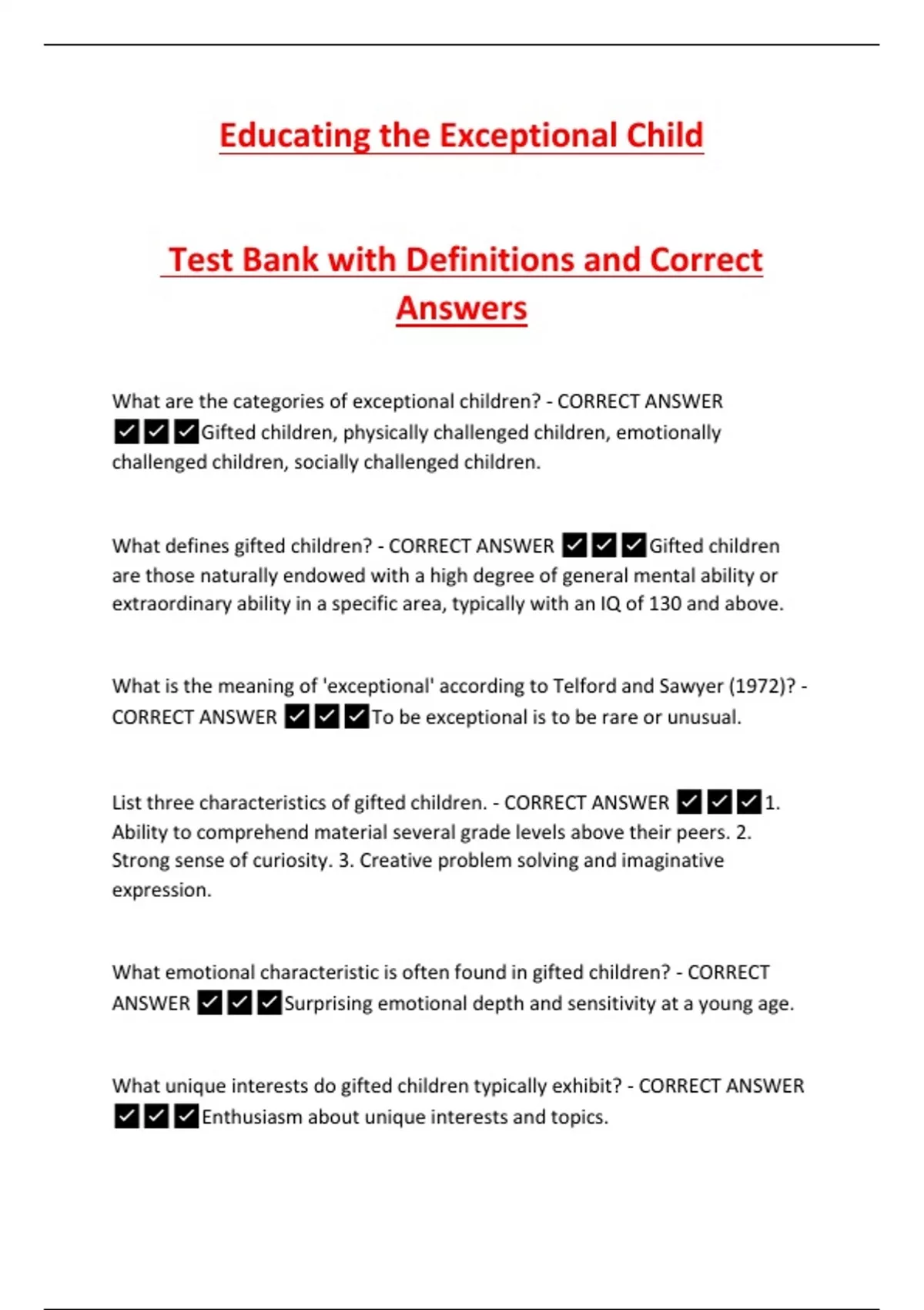 CORRECT ANSWER ✅✅✅Recognizing exceptional children allows for