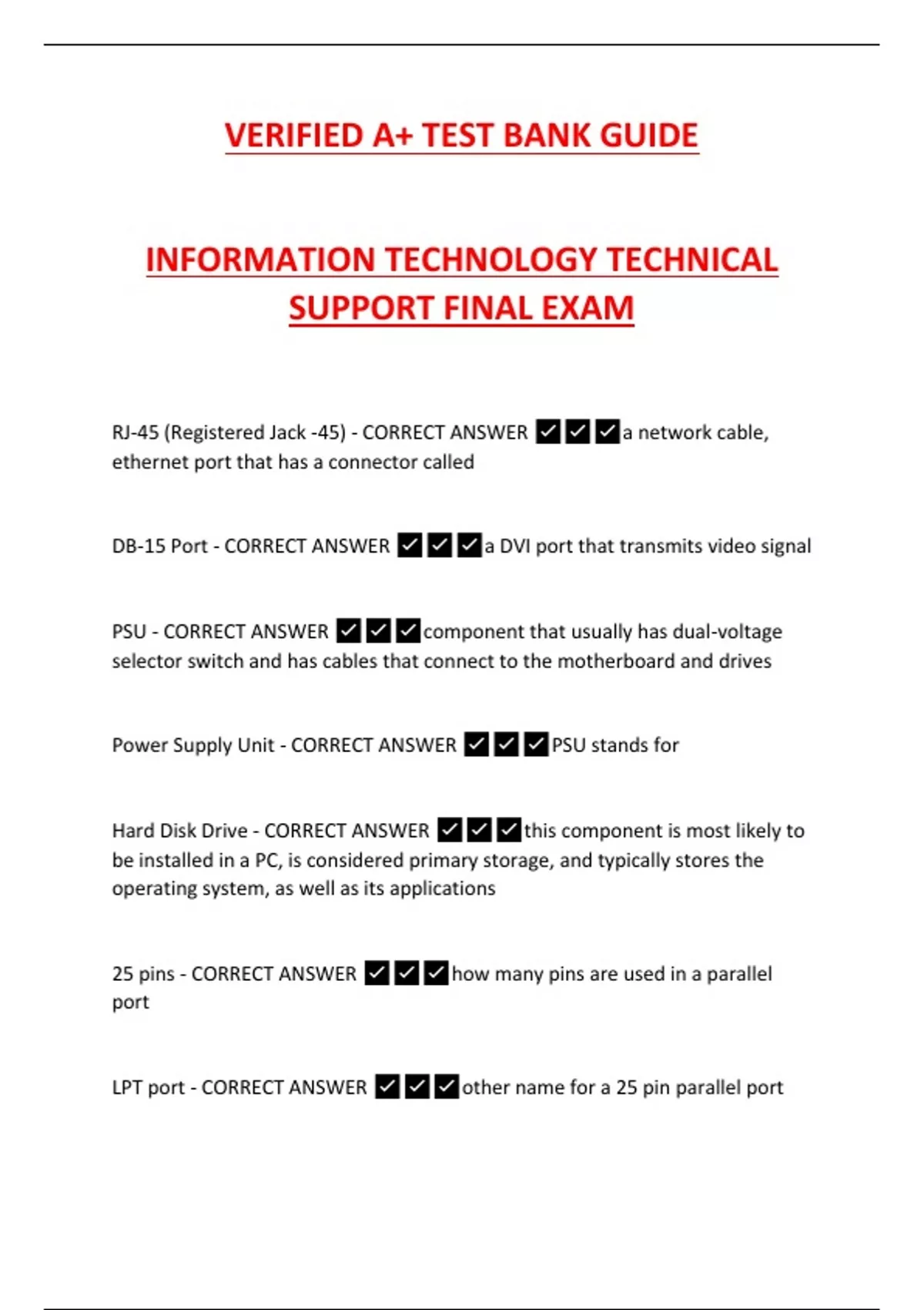 Power Supply Unit - CORRECT ANSWER ✅✅✅PSU stands for