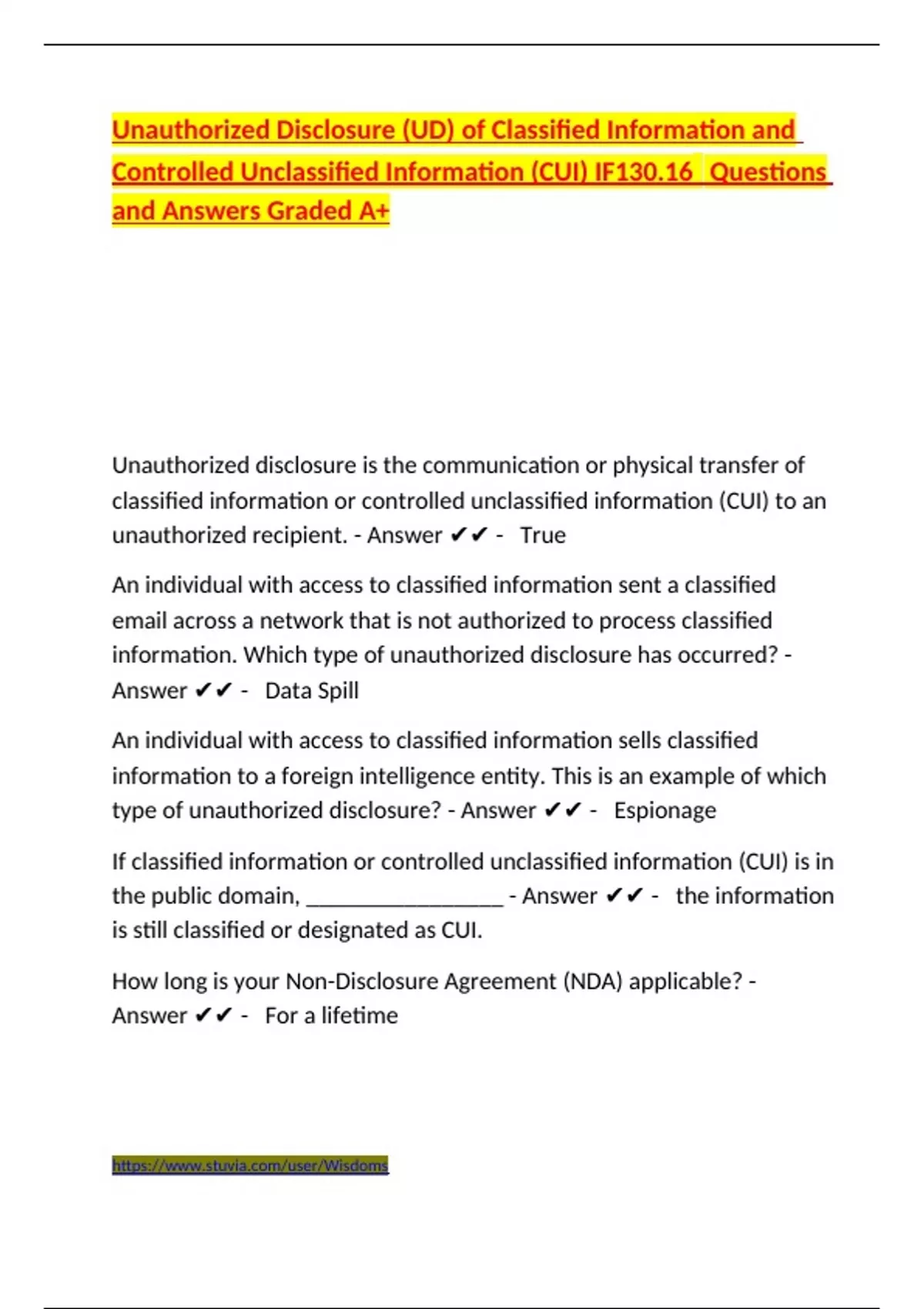 type of unauthorized disclosure? - Answer ✔✔ - Espionage