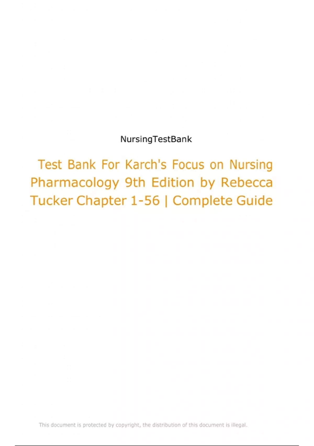 Get the full Test Bank for Karch’s Focus on Nursing Pharmacology, 9th Edition by Rebecca Tucker. This NCLEX-style test bank includes comprehensive questions and detailed answers on pharmacological principles, drug classifications, dosage calculations, side effects, and safe medication administration—ideal for nursing students preparing for pharmacology exams and clinical practice