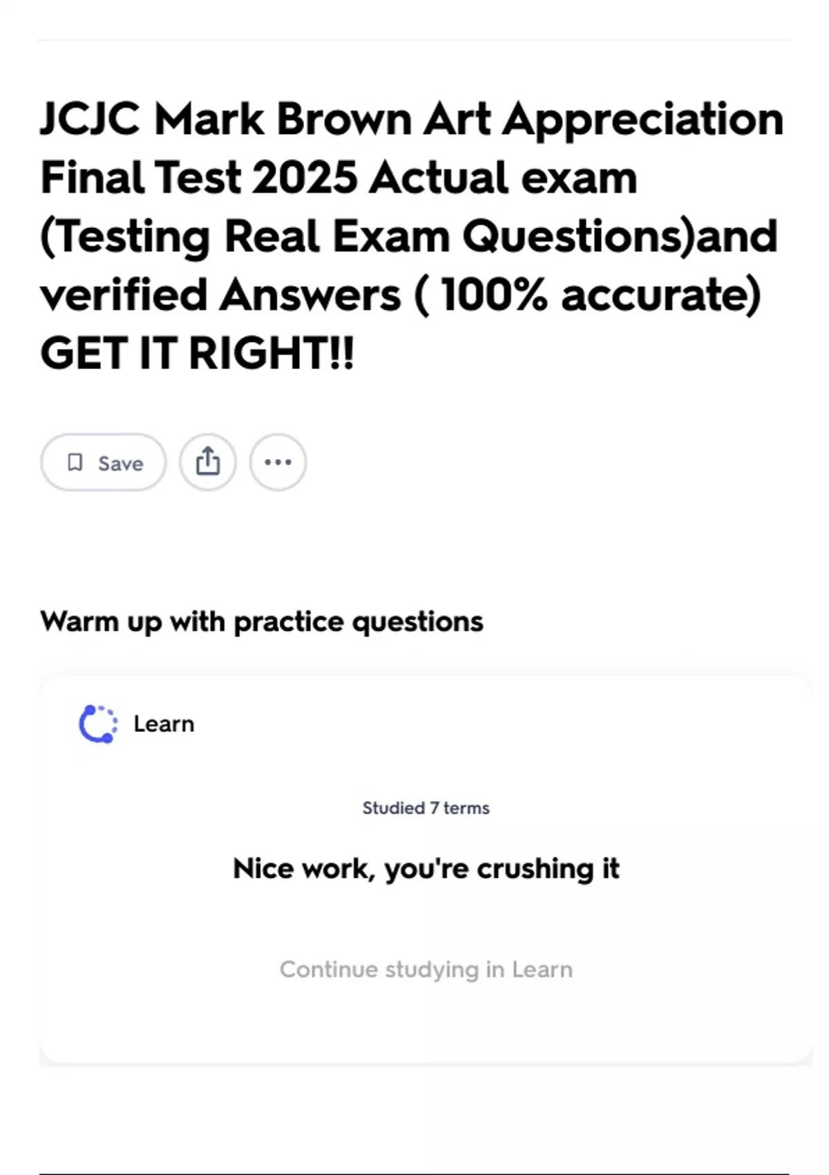 Continue studying in Learn