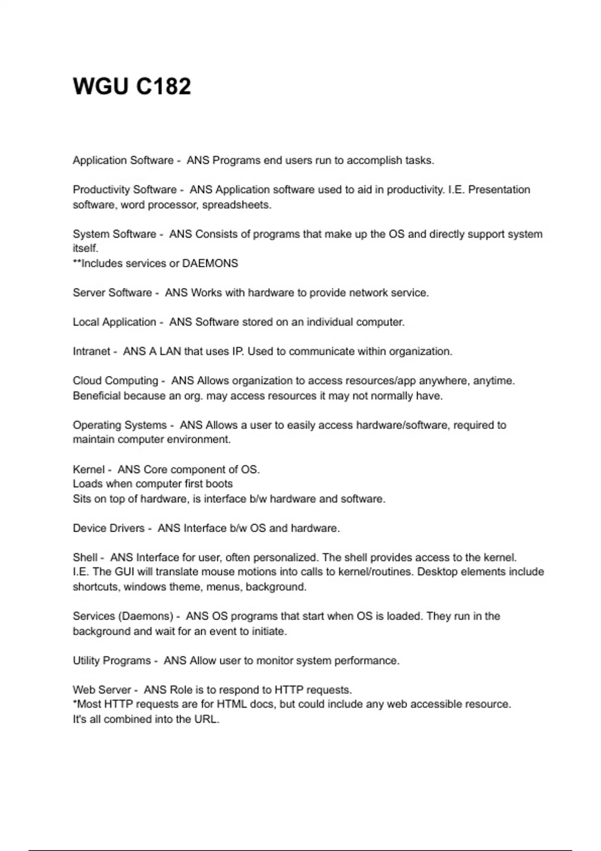Operating Systems - ANS Allows a user to easily access hardware/software, required to