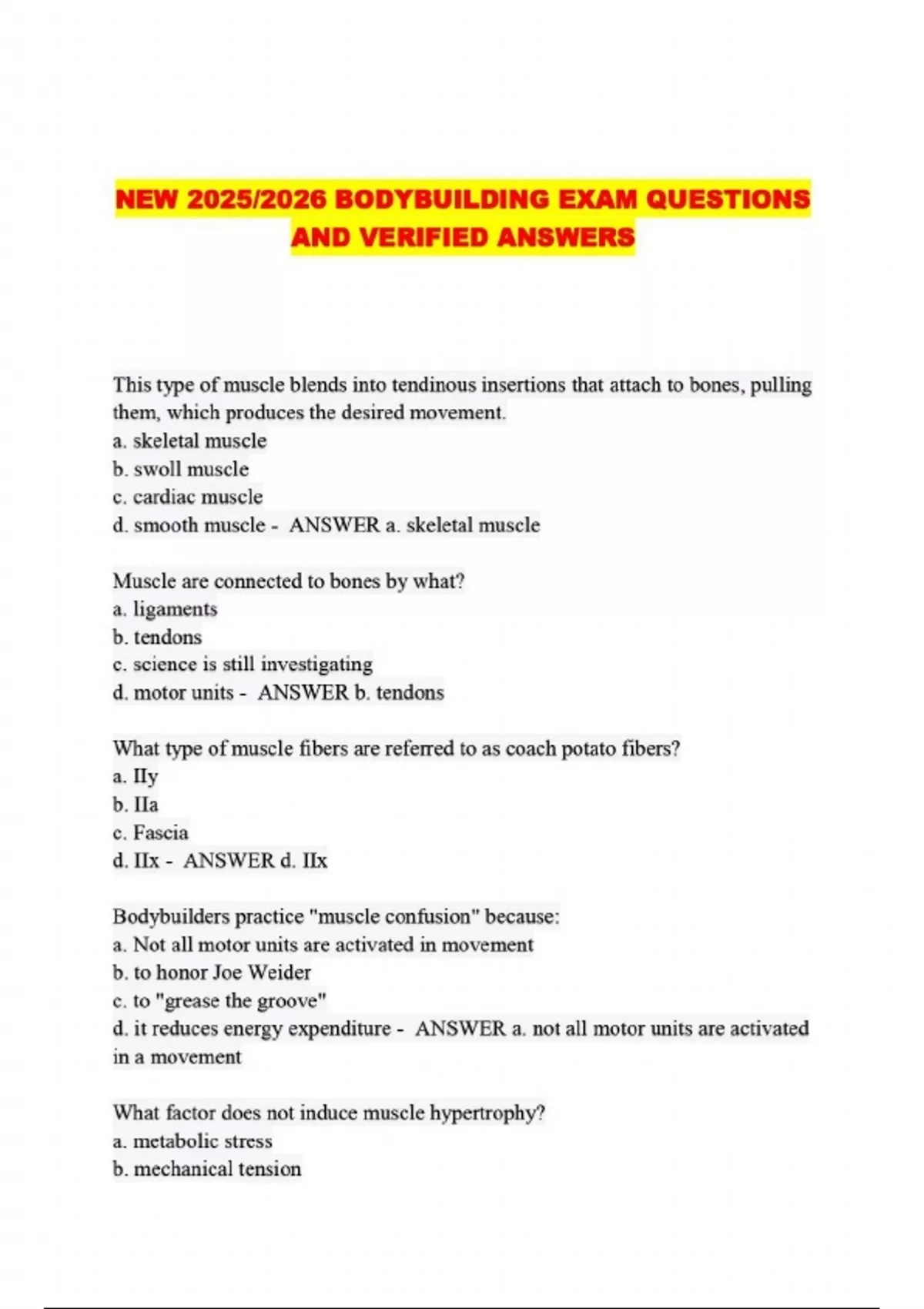NEW 2025/2026 BODYBUILDING EXAM QUESTIONS AND VERIFIED ANSWERS...