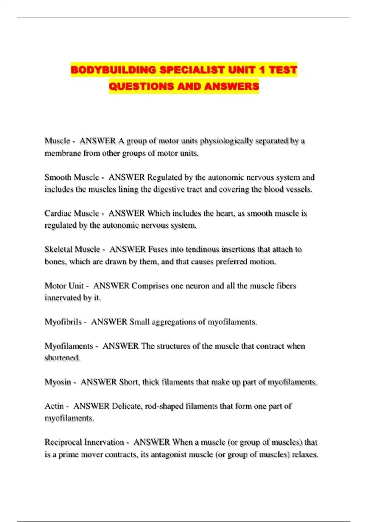 BODYBUILDING SPECIALIST UNIT 1 TEST