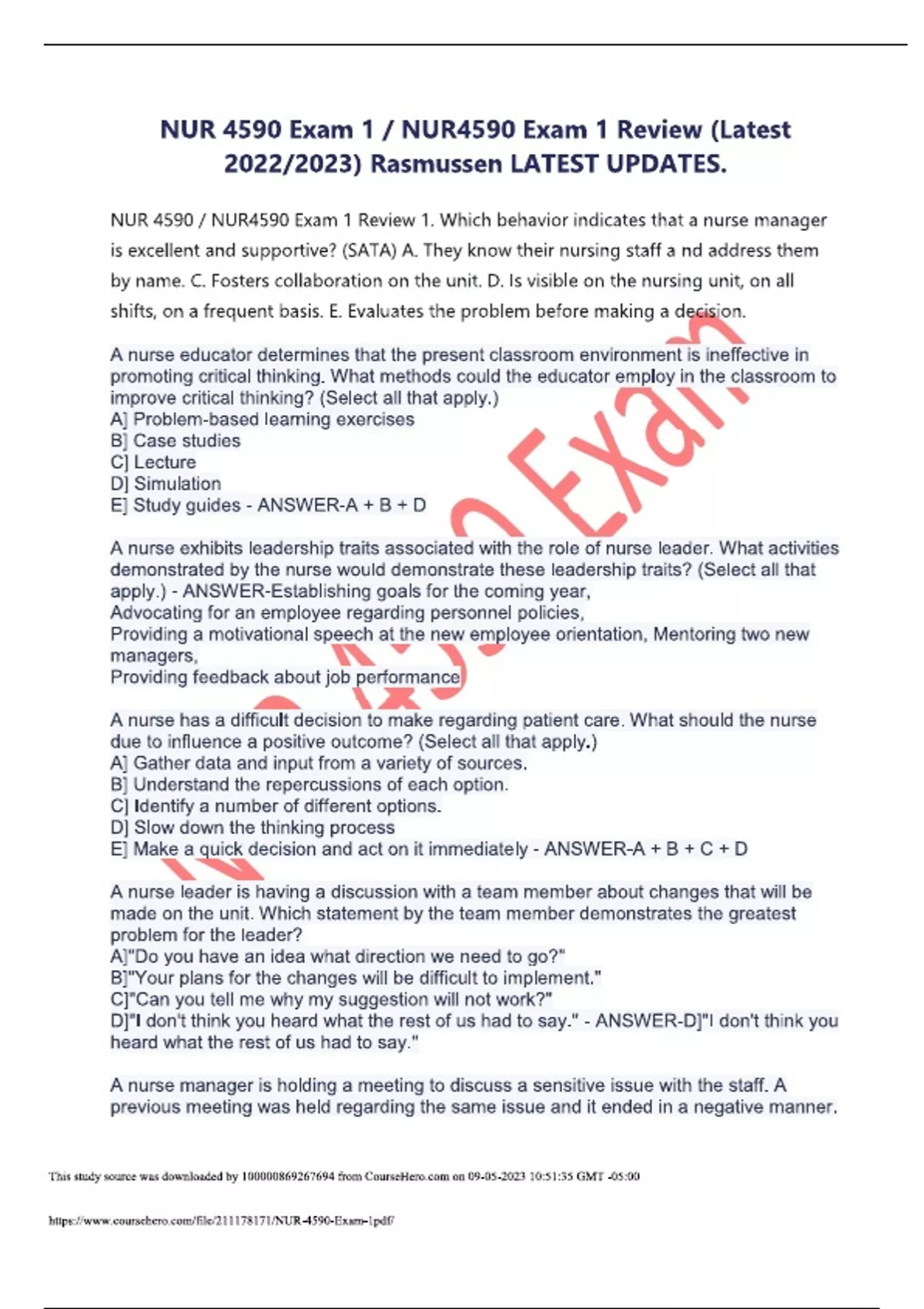 Nur 4590 exam 1 nur4590 exam 1 review latest rasmussen latest updates