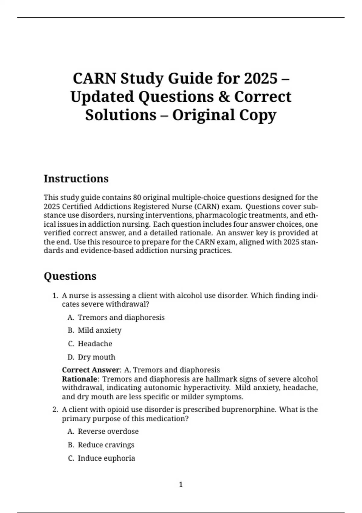 2025 Certified Addictions Registered Nurse (CARN) exam. Questions cover sub-