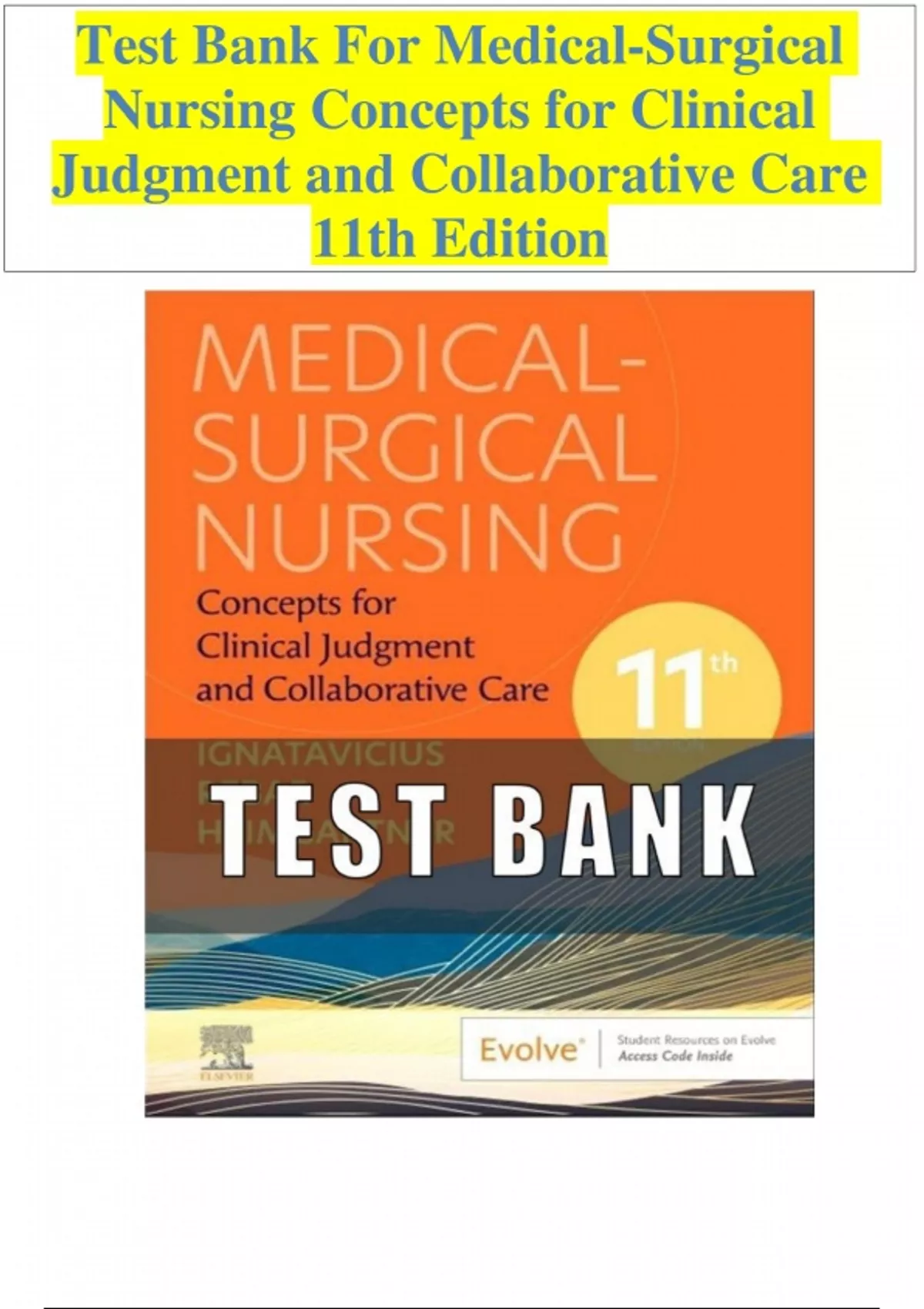 Download the comprehensive Test Bank for Medical-Surgical Nursing: Concepts for Clinical Judgment and Collaborative Care, 11th Edition. This NCLEX-style test bank features detailed questions and rationales designed to enhance clinical judgment, critical thinking, and collaborative care skills for nursing students. Ideal for exam prep covering adult health, nursing interventions, pathophysiology, and patient-centered care.