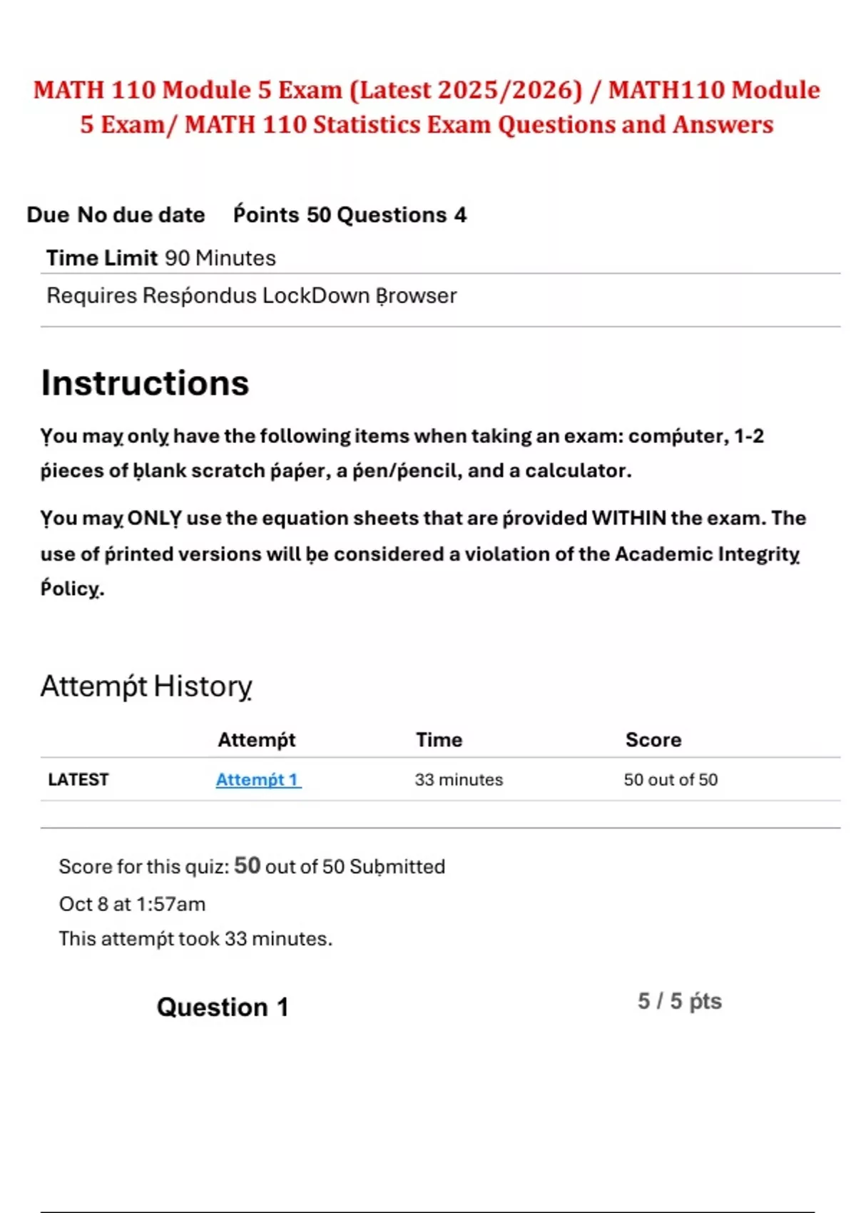 LATEST Attemṕt 1 33 minutes 50 out of 50