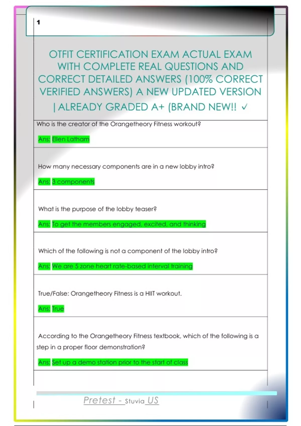 OTFIT CERTIFICATION EXAM ACTUAL EXAM WITH COMPLETE REAL QUESTIONS AND CORRECT DETAILED ANSWERS (100% CORRECT VERIFIED ANSWERS) A NEW UPDATED VERSION |ALREADY GRADED A+ (BRAND NEW!!