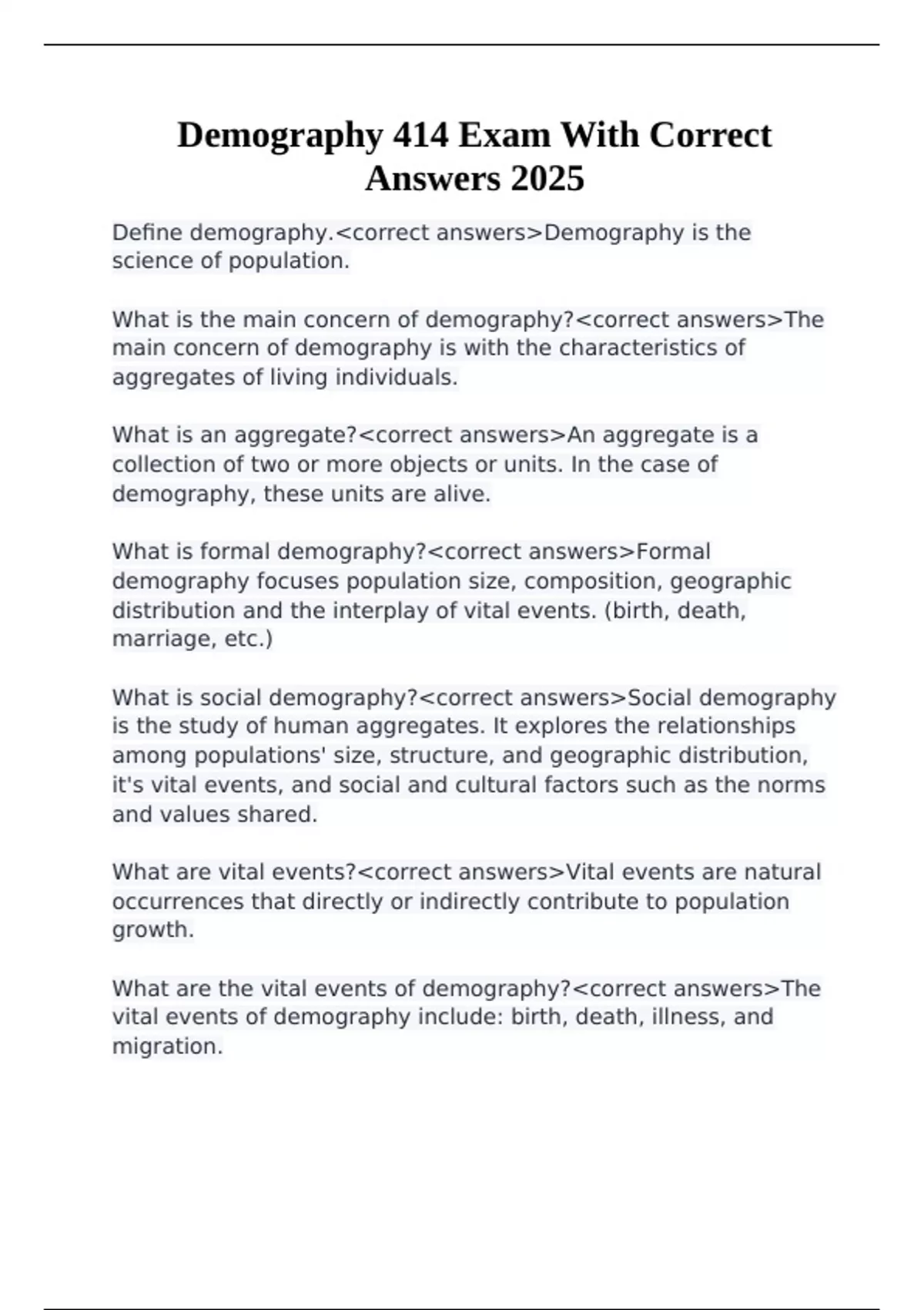 Exam of 2 pages for the course Demography 414 at Demography 414 (Demography 414)