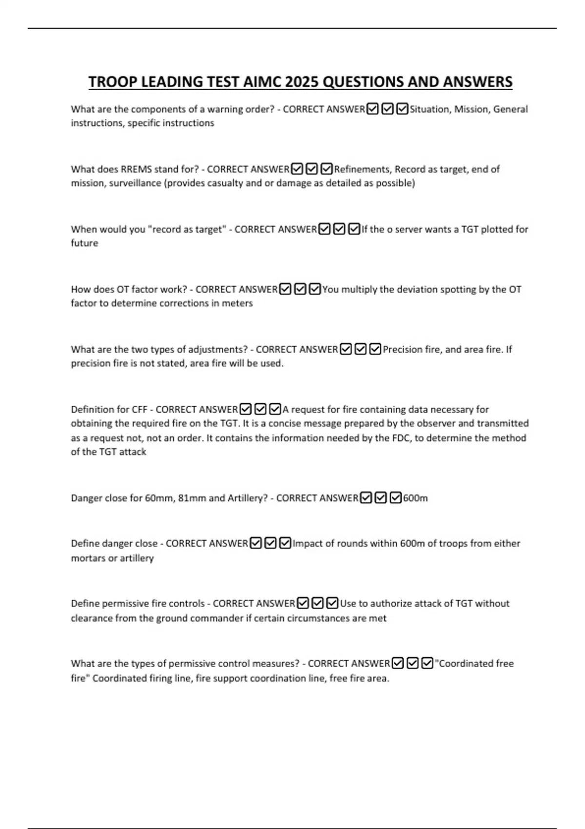 TROOP LEADING TEST AIMC 2025 QUESTIONS AND ANSWERS