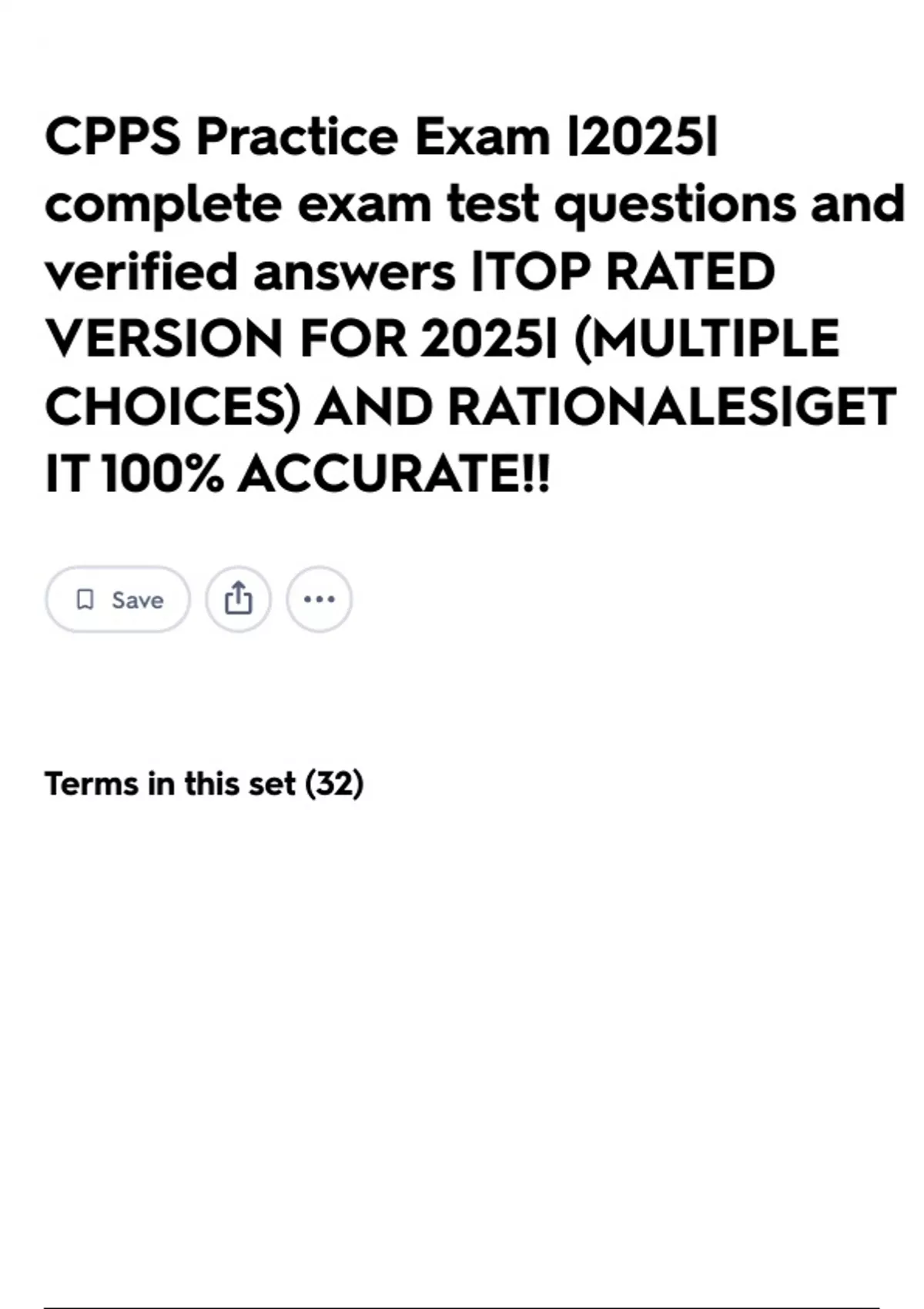 CPPS Practice Exam |2025| complete exam test questions and verified answers |TOP RATED VERSION FOR 2025| (MULTIPLE CHOICES) AND RATIONALES|GET IT 100% ACCURATE!!